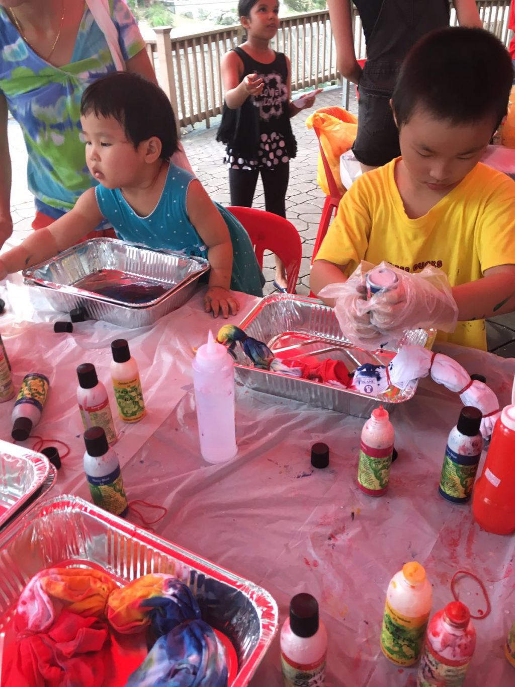Mostly children came to tie and dye their t-shirts. I think they found it enjoyable to mess up clothing and then get their moms or domestic helper to wash it in the washing machine.