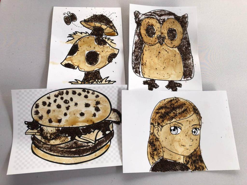 Due to the short timing of 30mins, we designed and printed pre-made cards so that the children can easily paint on the cards and add the coffee powder onto it.