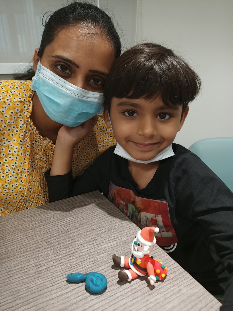 Here in my two workshops, the children had expressed different looks of Santa using non-toxic air dry clay!