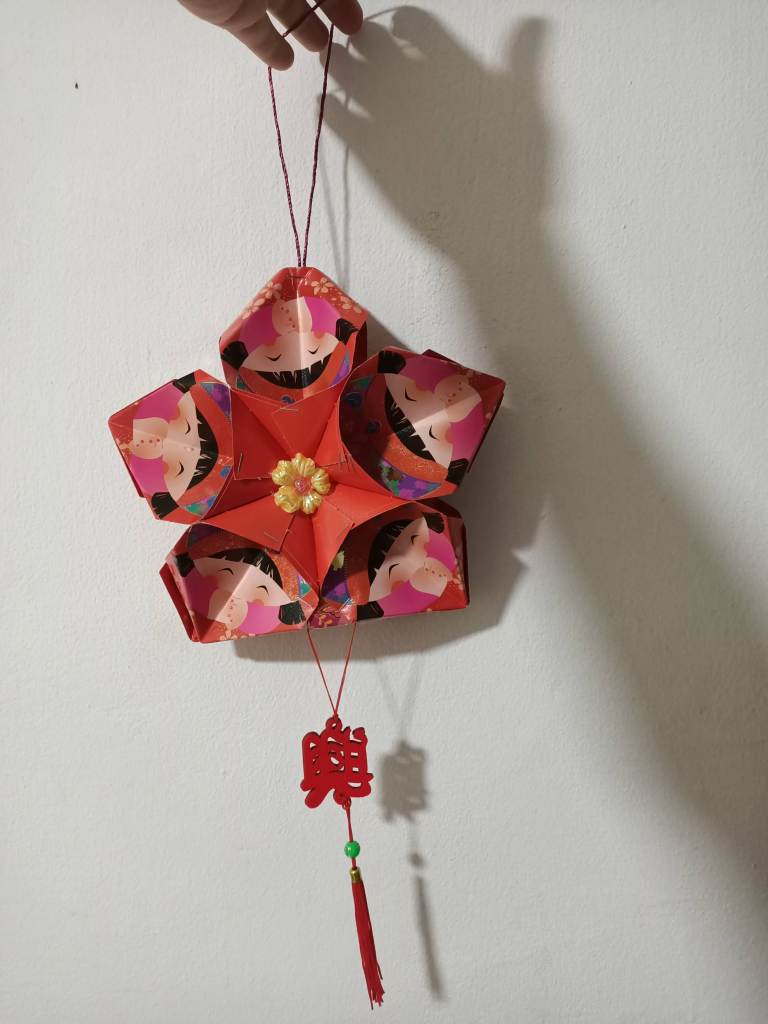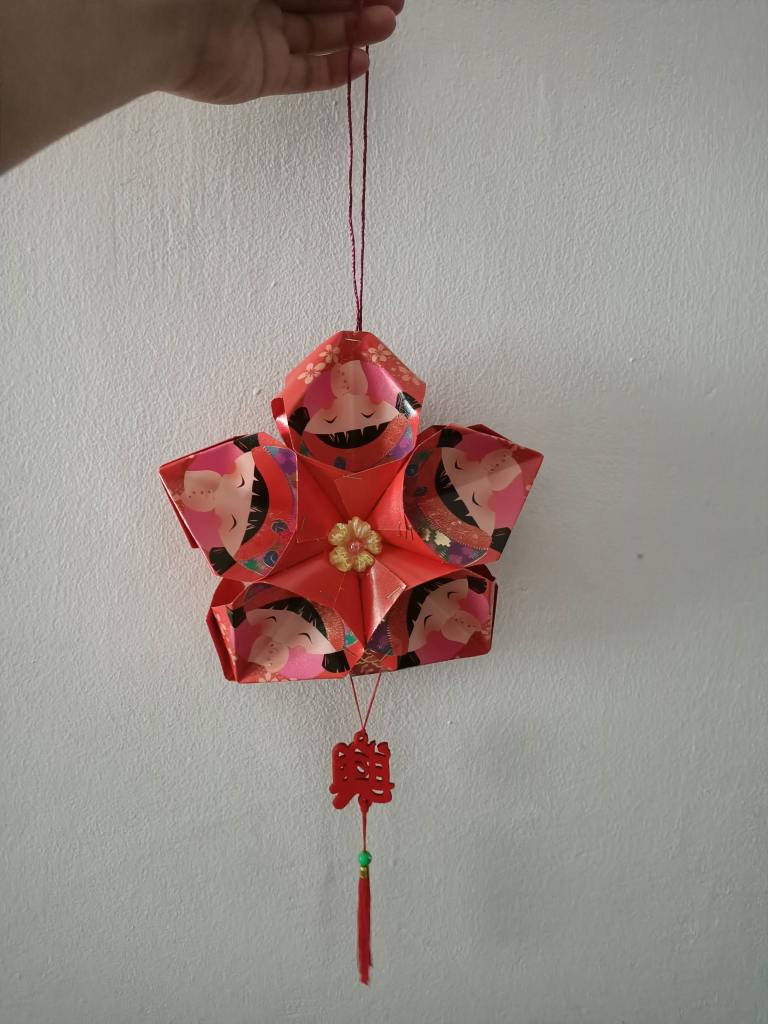 It was a pleasure to teach them this skill to enable them to decorate their homes with festive decorations. They learn how to make a 5 point star flower lantern and a more complicated ball lantern using Red Packets/Ang Pao packets.
