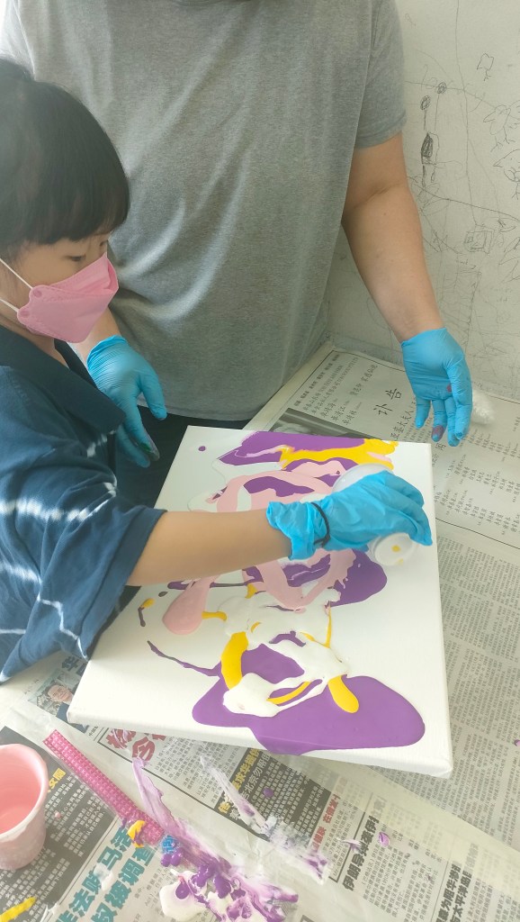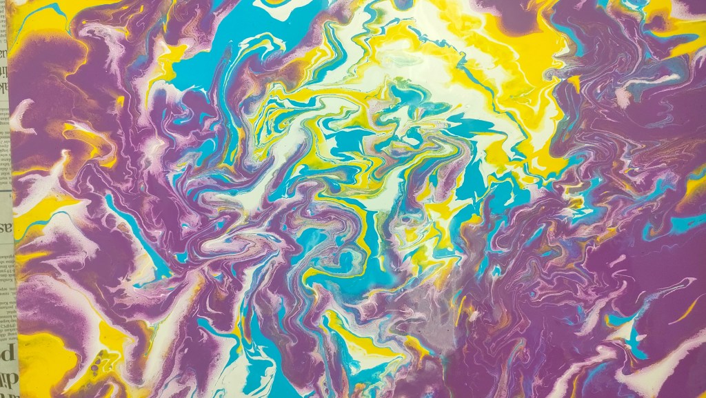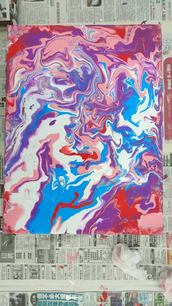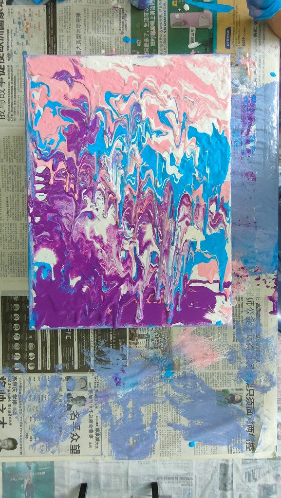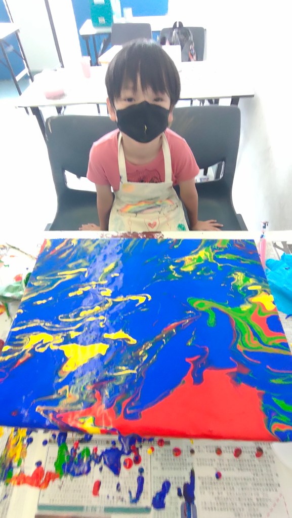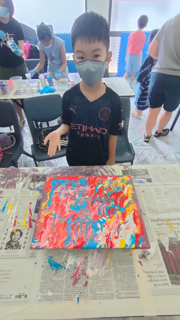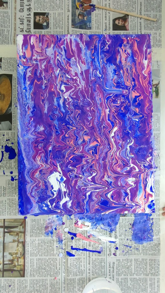 19 March 2022 – My acrylic pour painting is really popular with everyone! In June, I have more of these classes going on so you will see more pictures from me soon!