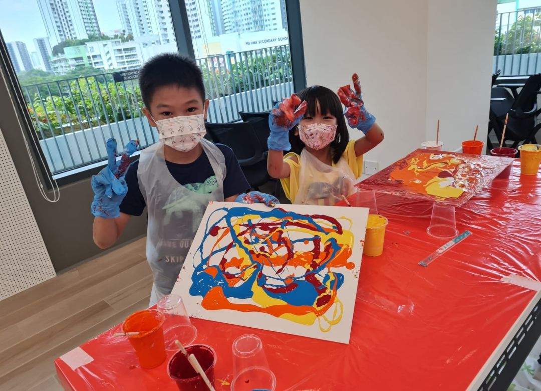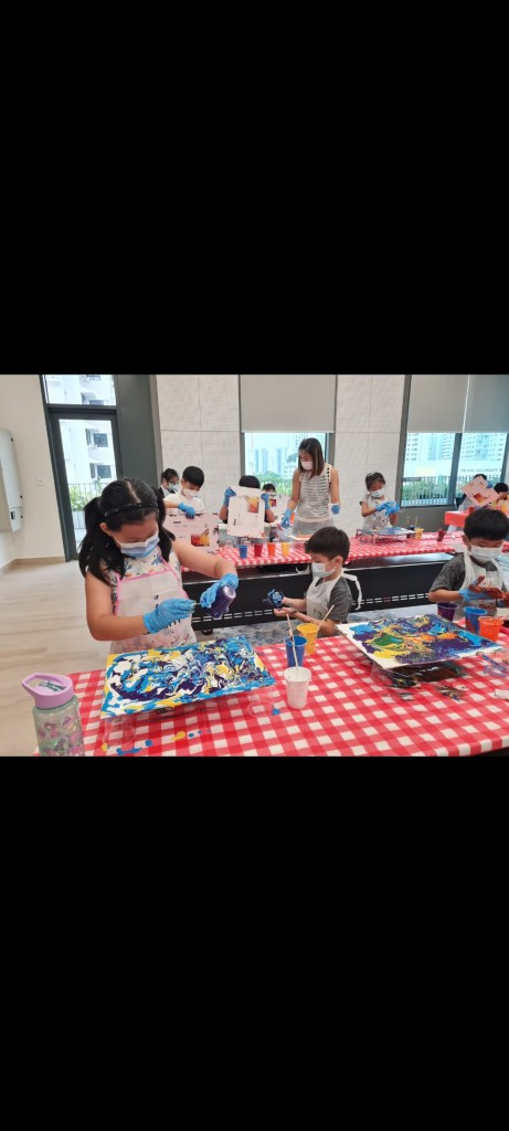8 June 2022: Our June School Holiday Art Programme kickstarted with our popular Acrylic Pour Painting with Fernvale Cc! What a big class of 20 participants we have! Acrylic Pour Painting is a messy art form but one that allows so much spontaneity and mistakes to make! It is perfect for newcomers to the paint form! Please enjoy the photos and support their first-time artworks!