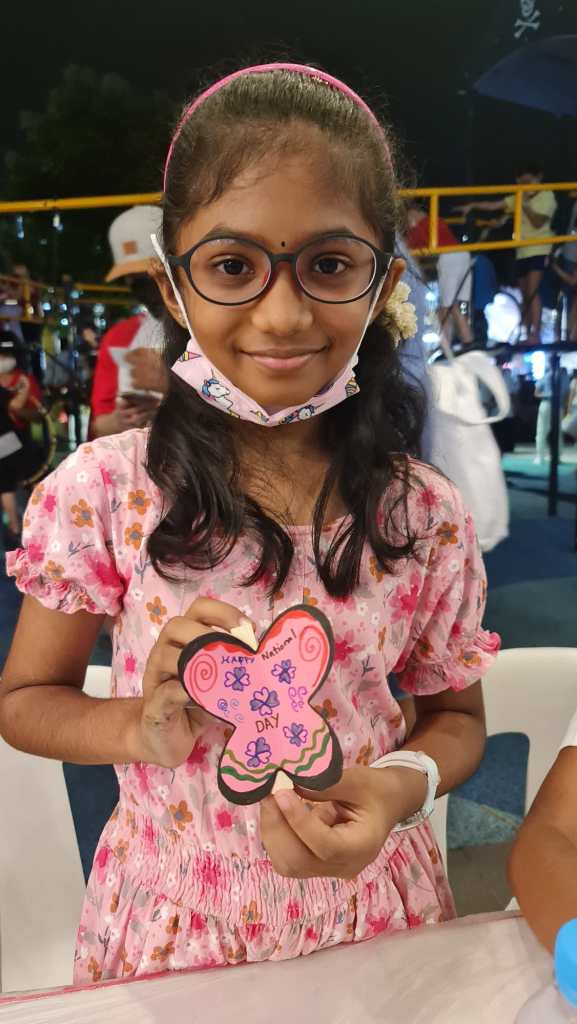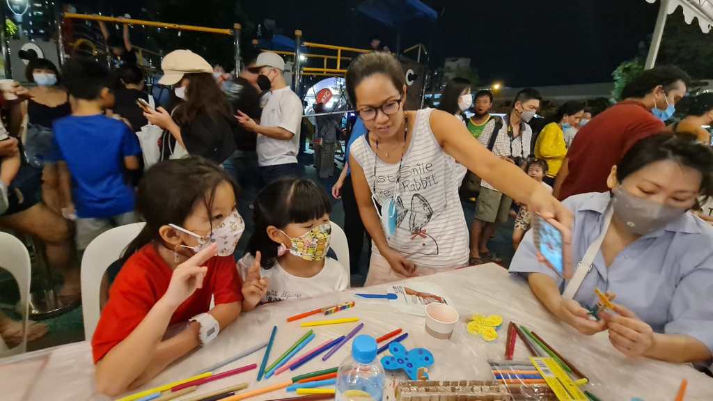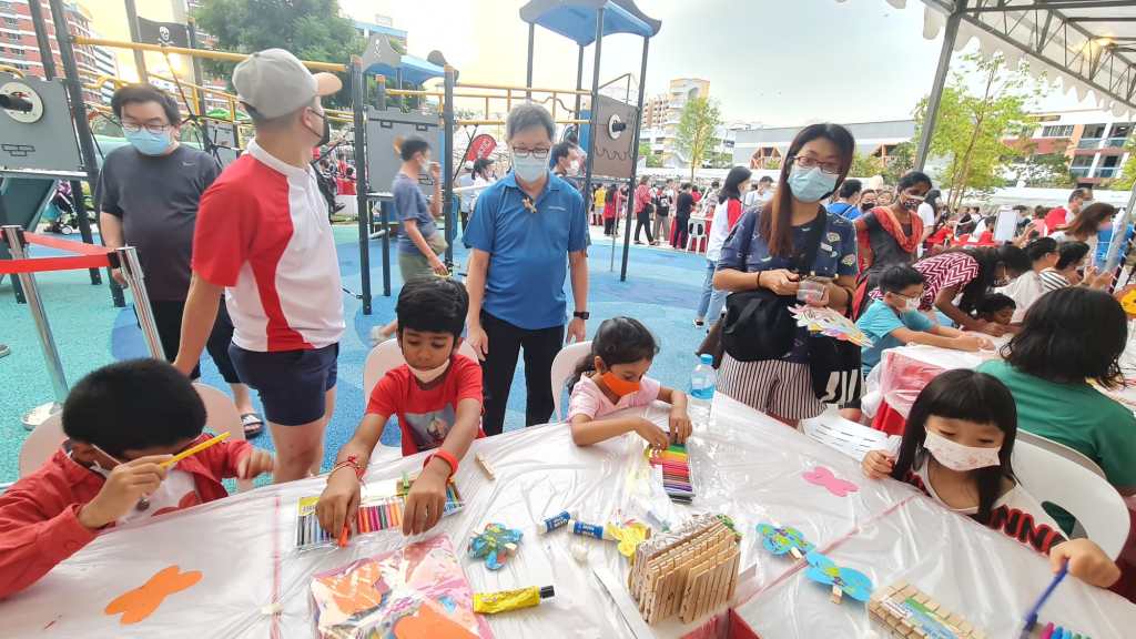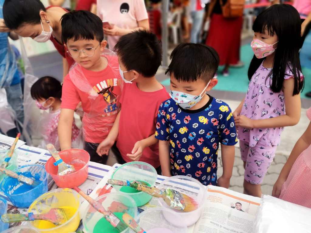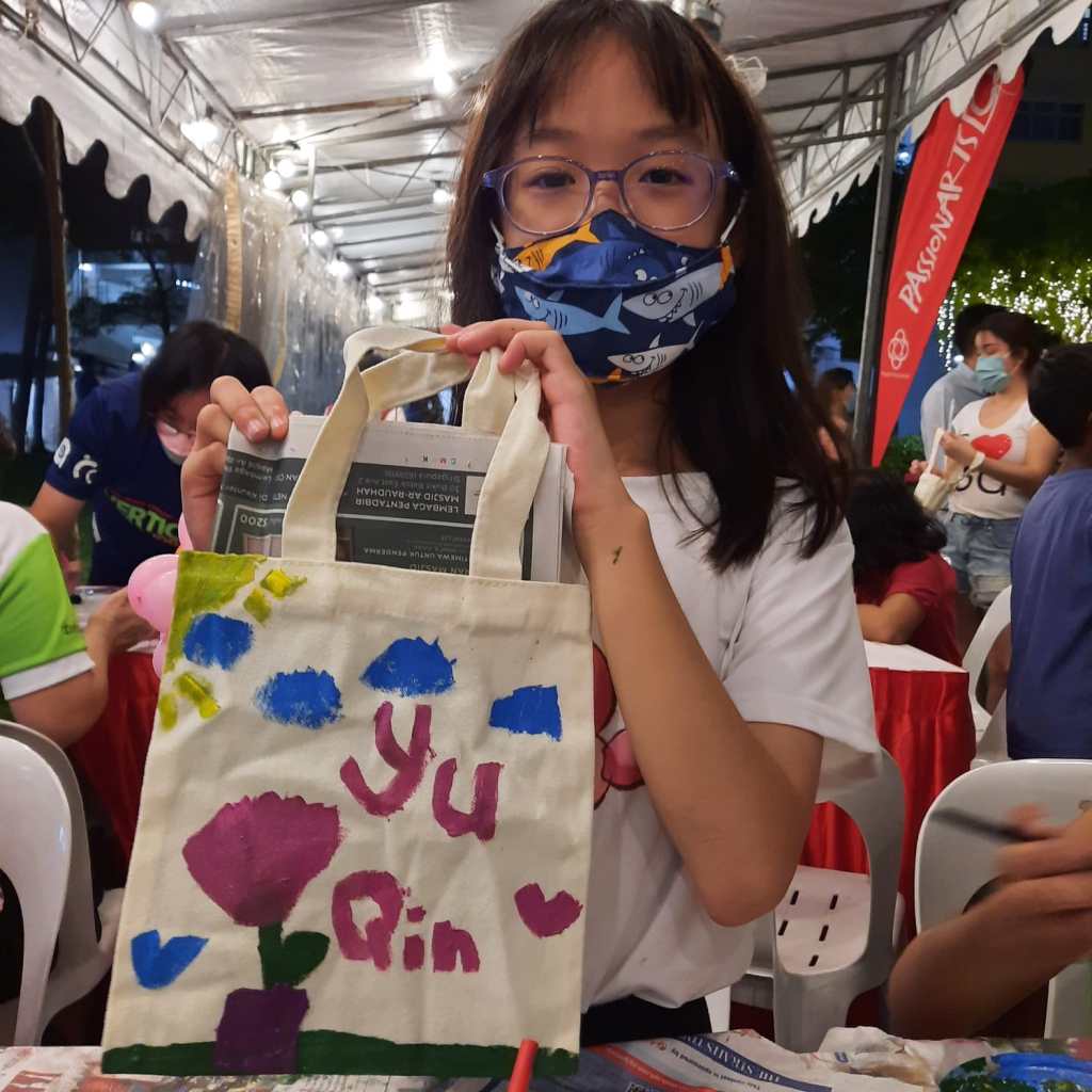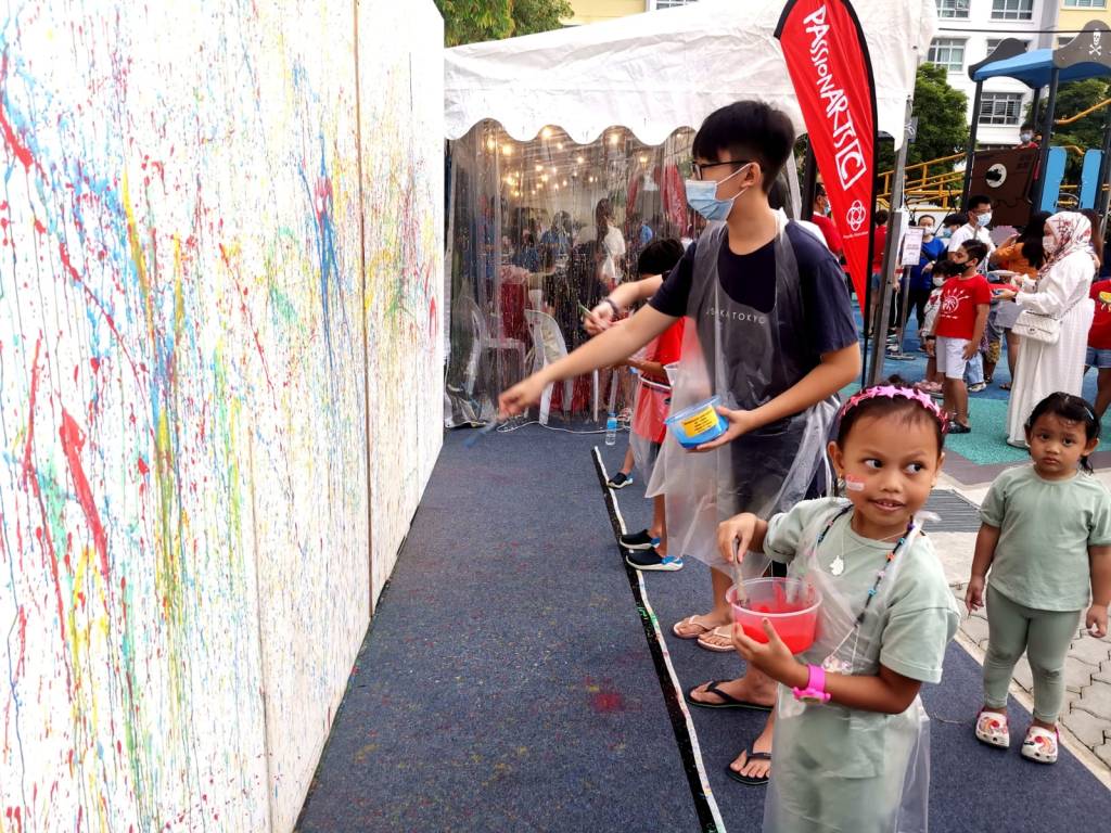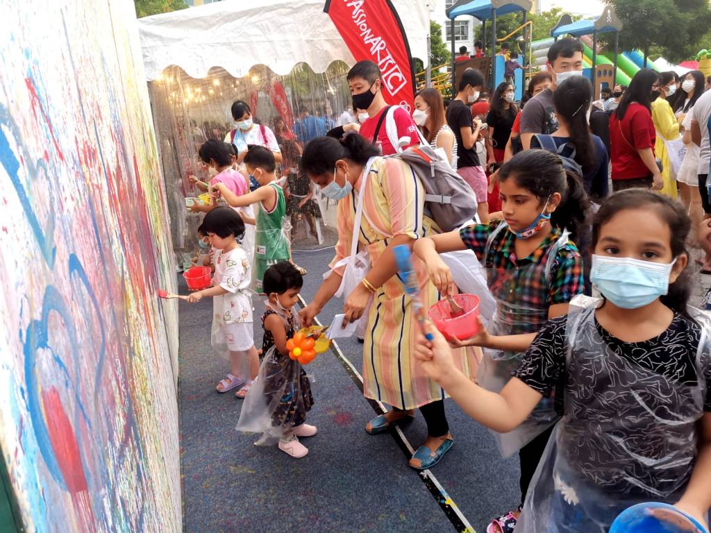 Residents of the area created and took home a Lion Mask, a Painted Totebag, a Cloth Peg Butterfly/Airplane Clip and left a splash of colour on the wooden board for a fun and colourful time! What a National Day happening that was!