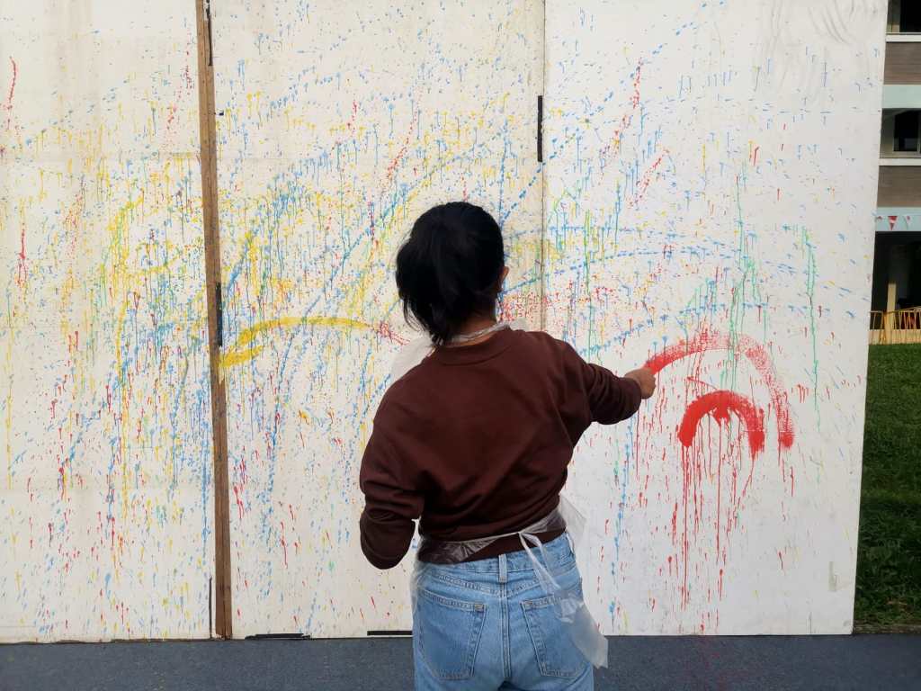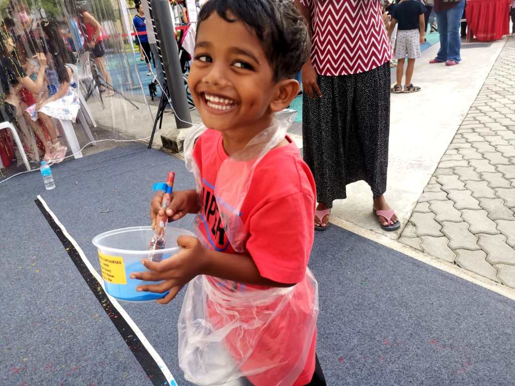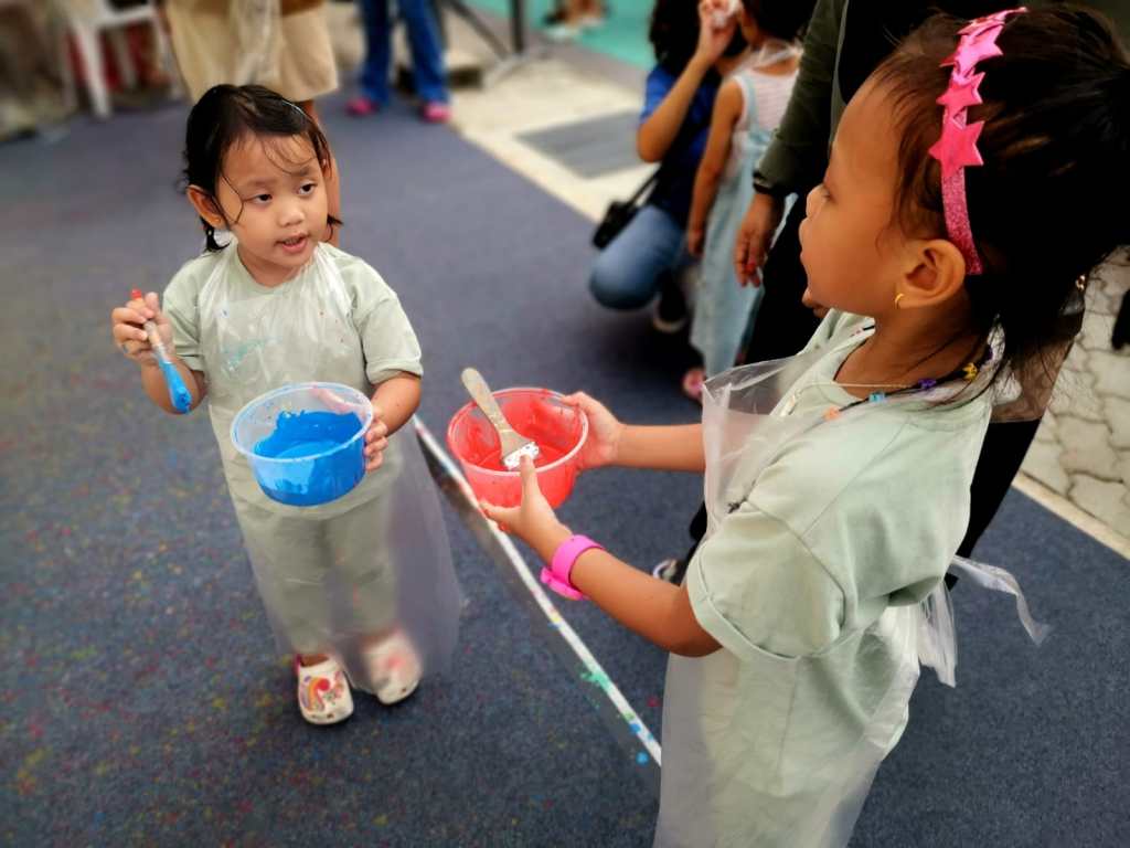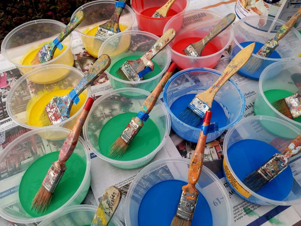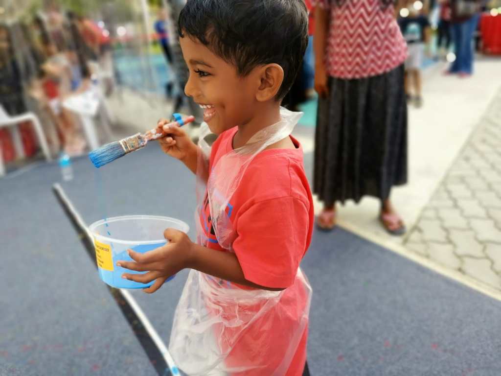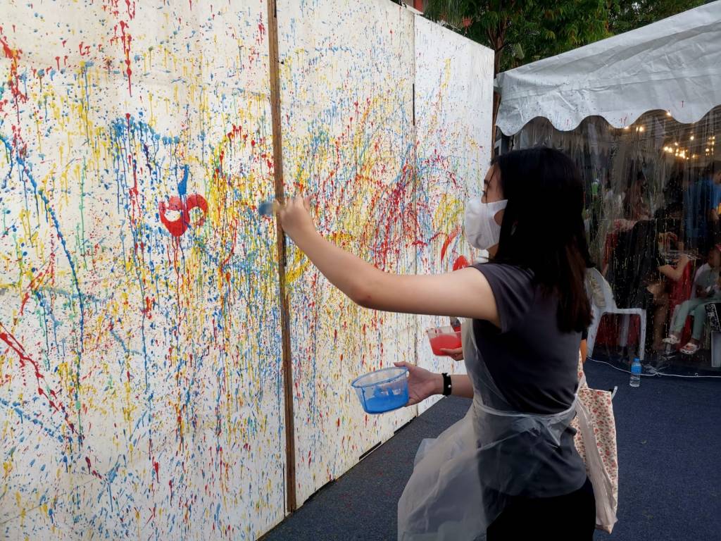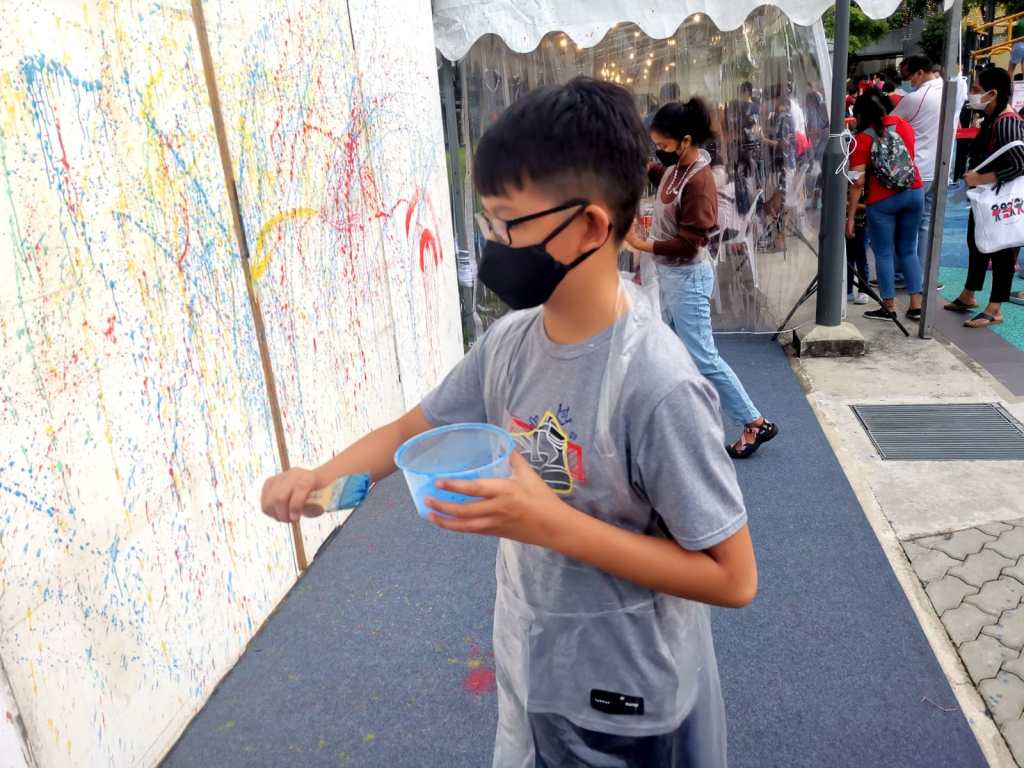 Residents of the area created and took home a Lion Mask, a Painted Totebag, a Cloth Peg Butterfly/Airplane Clip and left a splash of colour on the wooden board for a fun and colourful time! What a National Day happening that was!