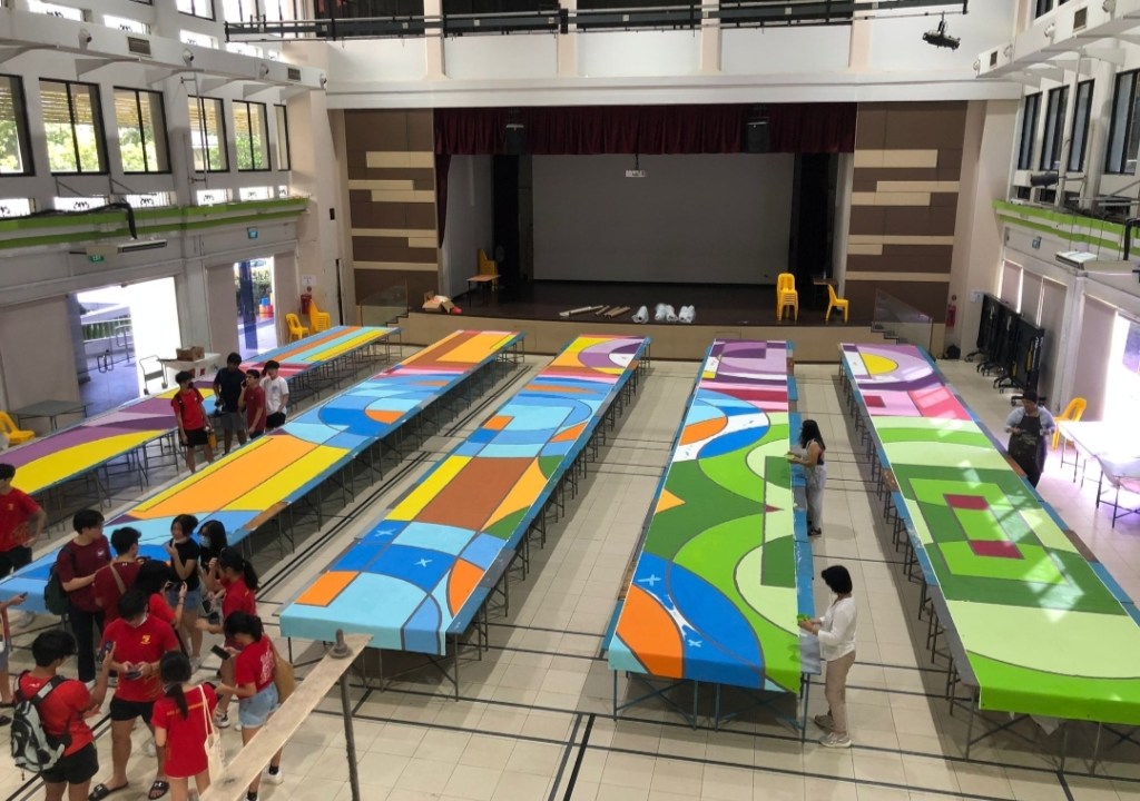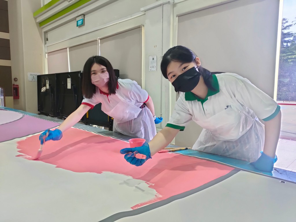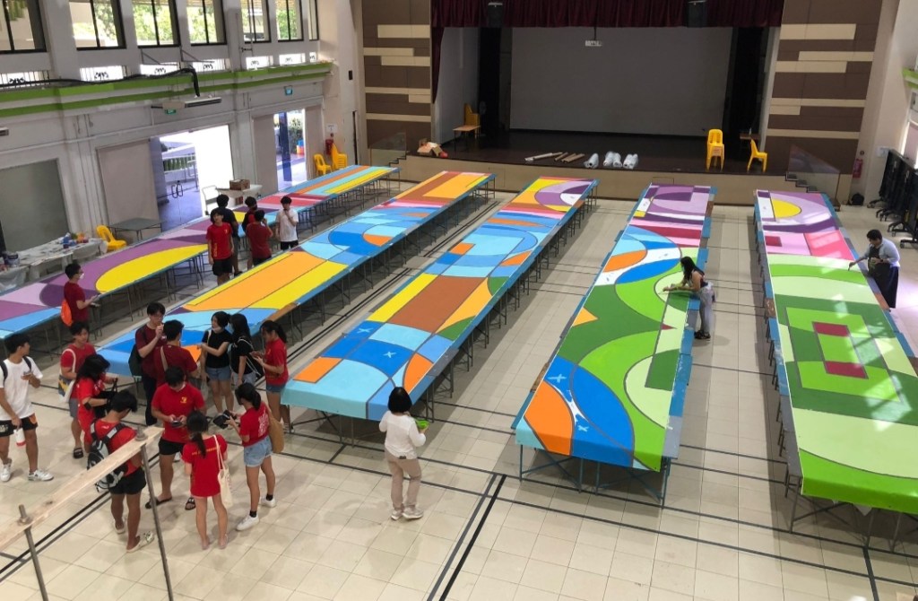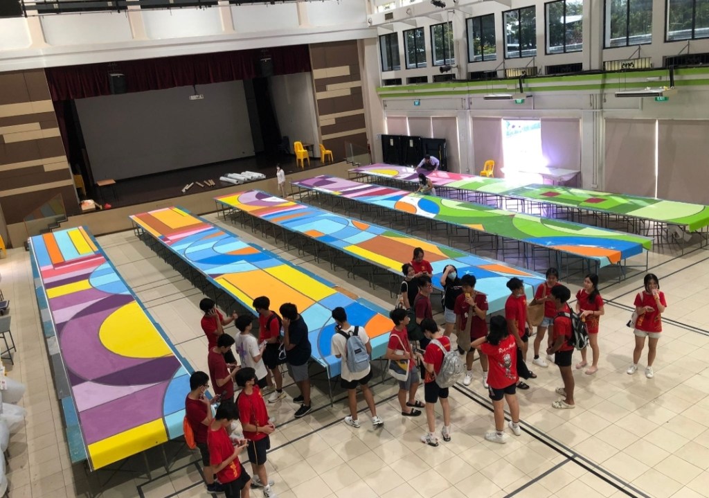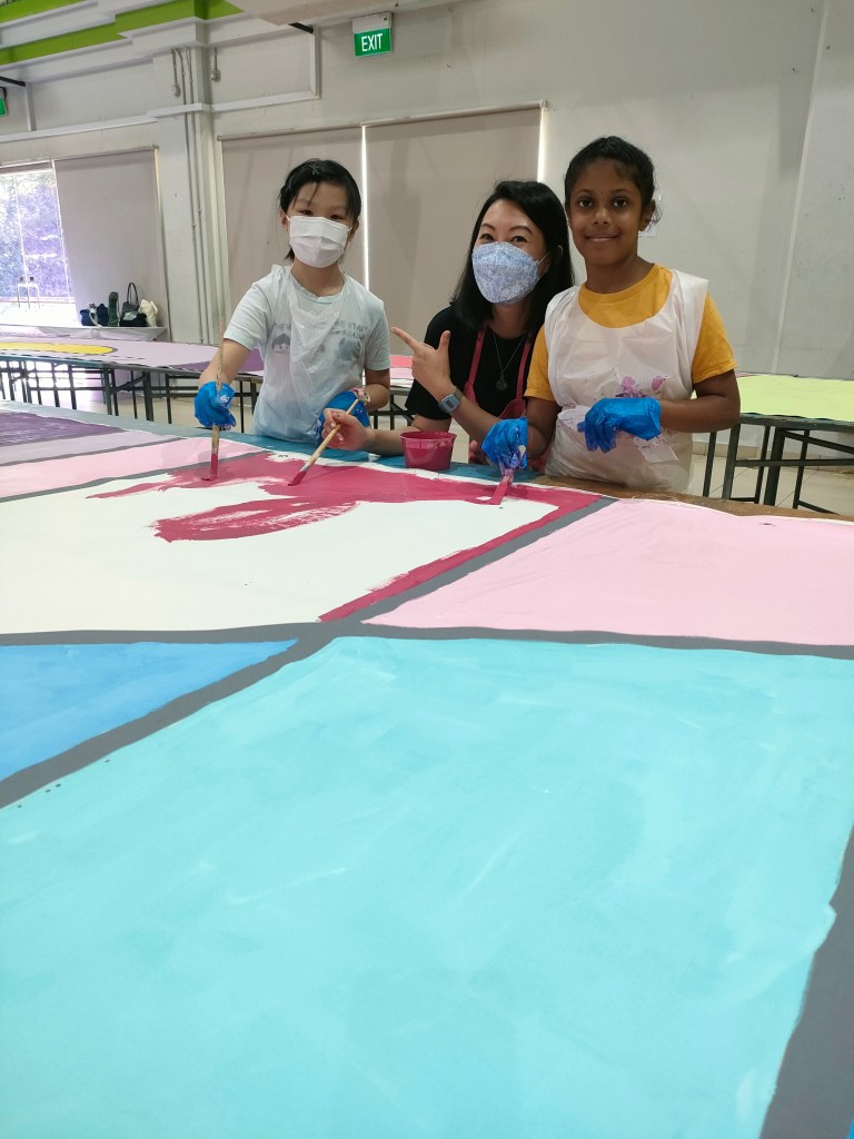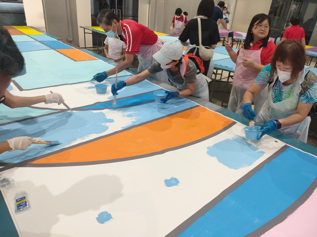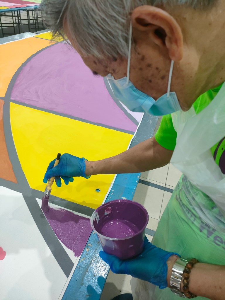 We had chosen a simple geometric design, one that showed diversity and harmony in lines and colours to represent the community. It was a two-day event of busy painting, coordinating, and touching up of ten pieces of 10metres long PVC banners! It was o easy feat but we completed it with grace and pride!