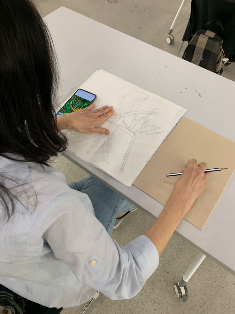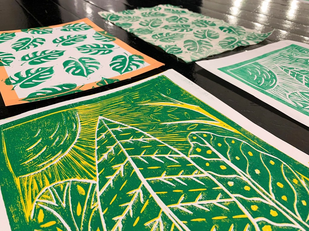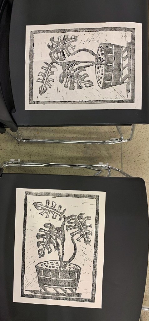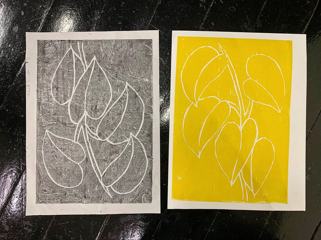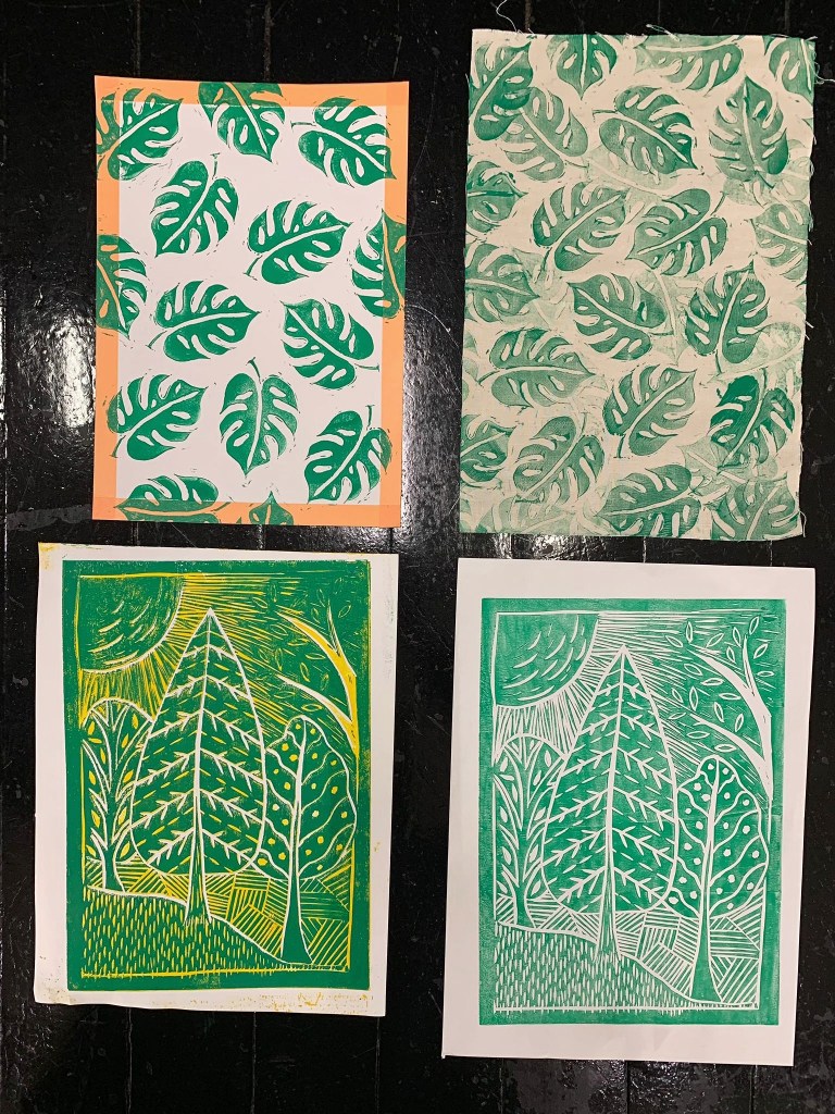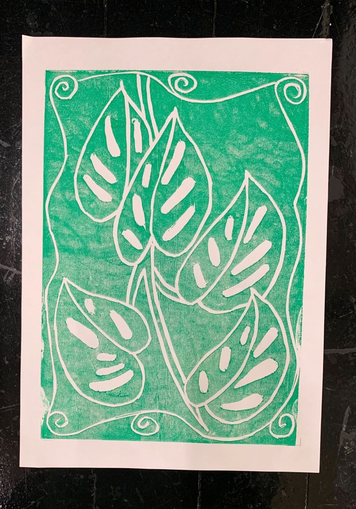 The Seniors started with their sketch on paper which was later transferred to the Linopad and then they could carve out using the cutting tools. After carving 1st layer, we applied 1 layer of colour first before moving onto the next colour.