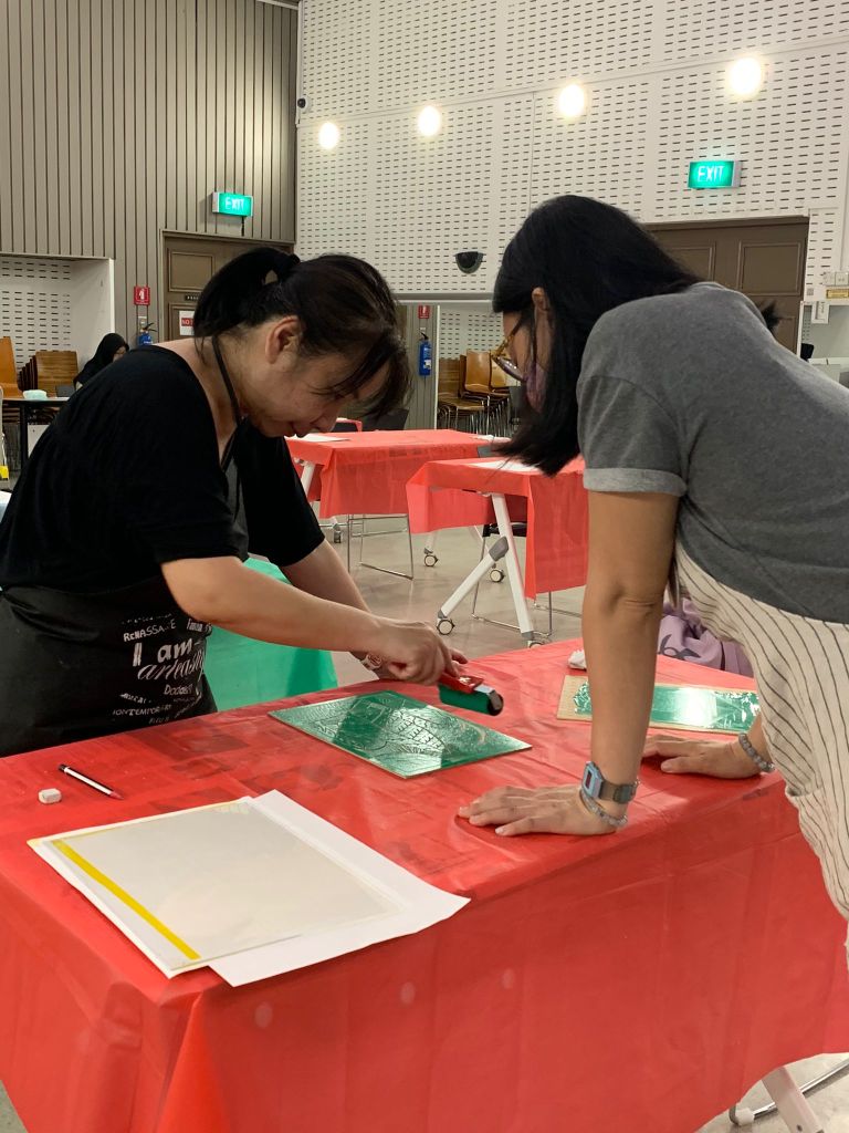 2, 6, 9, 14 March 2023 – We were back at Geylang East Library with another exciting programme for the Seniors! This time we taught the craft of Printmaking techniques to a group of 15 Seniors.