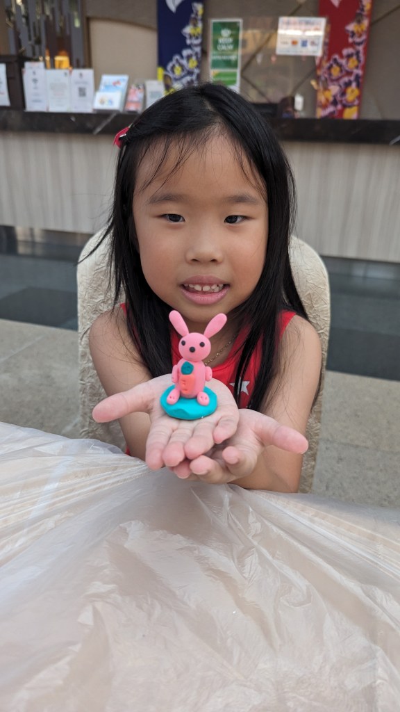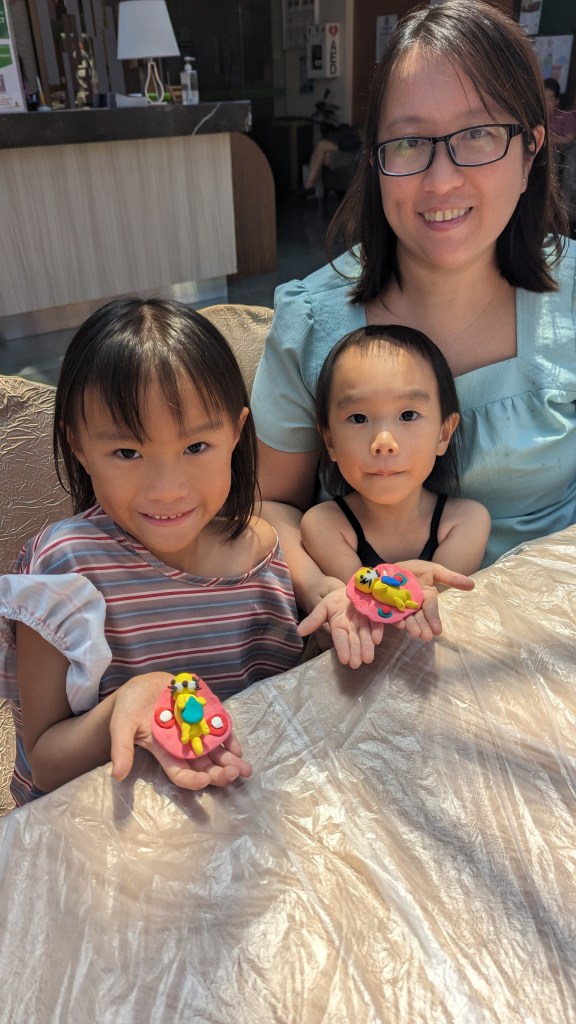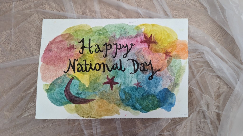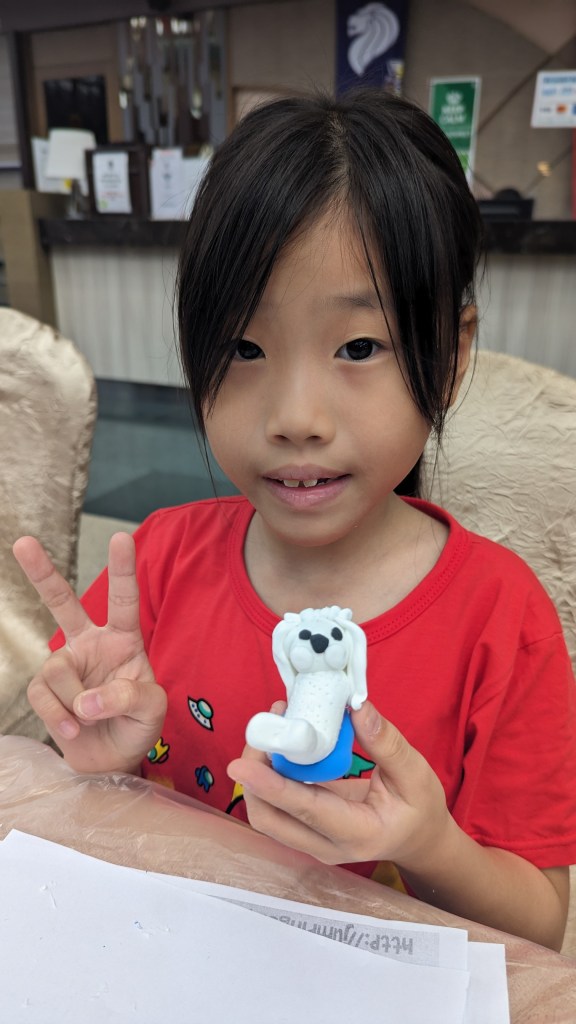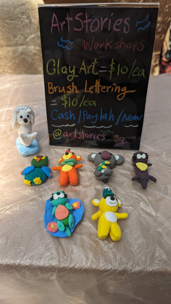 Cheryl and I took a nice space in the main lobby of the club to conduct two of our popular craft booth type: Air-Dry Clay & Brush Watercolouring! It was amazing, everyone was in good spirits and sang along to the National Day Songs played over the speakers. We were all dressed in Red & White clothing and some children had their face/arms painted with our National Flag too!