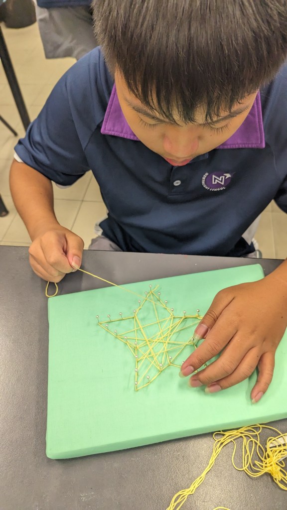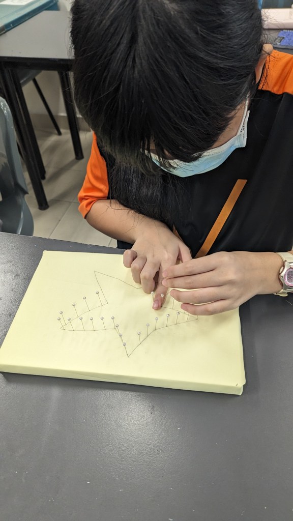 String Art is a type of craft that is seldom taught at the Primary or Secondary school level. It is also a craft type that involves skillful hand-eye coordination and careful planning as the wrong turn of the string can be an unfavorable result.