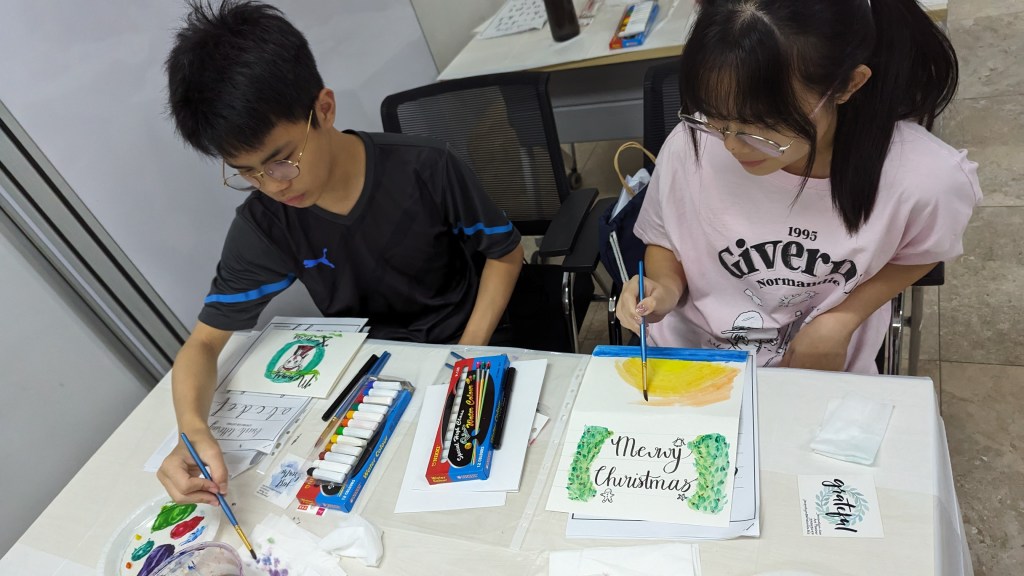 After Mason Jar workshop, we also had a class of serious Brush Lettering Calligraphy participants eager to create their own X’mas Greeting Cards for the holiday season!