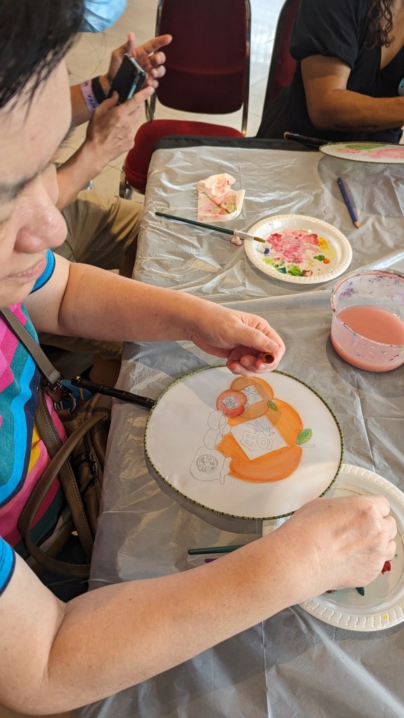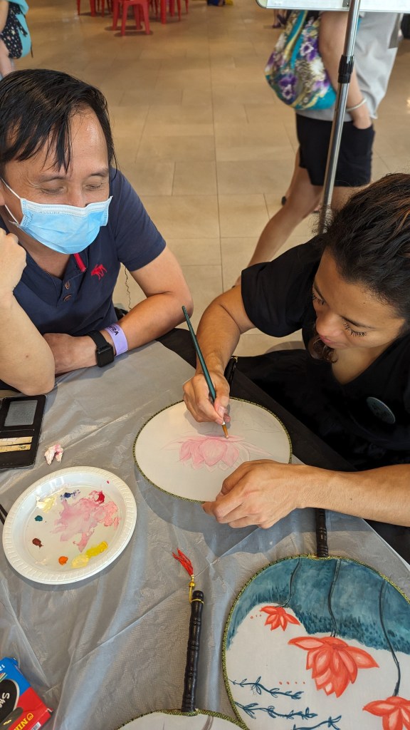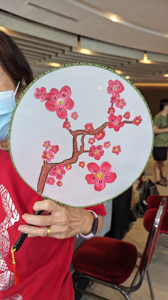 On one table, we have Fan Painting which the members really enjoyed very much as they are able to paint their desired image on a silk fan and take it home to use. The members told us that they really do enjoy painting.