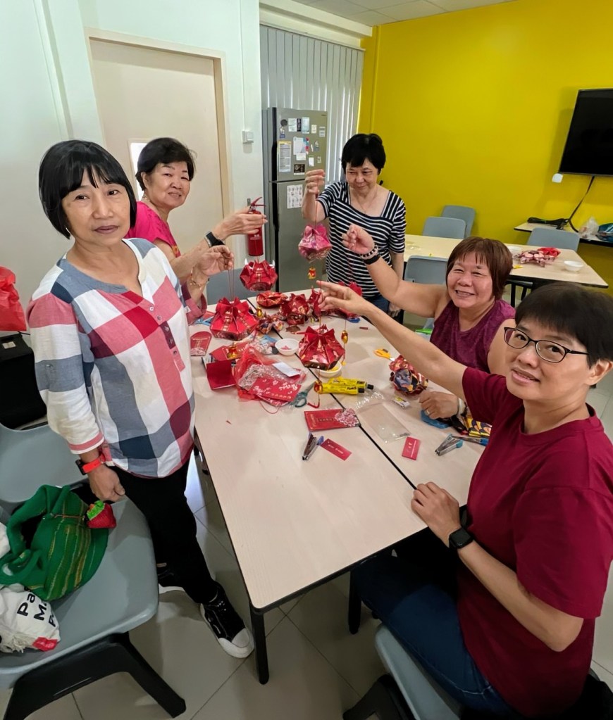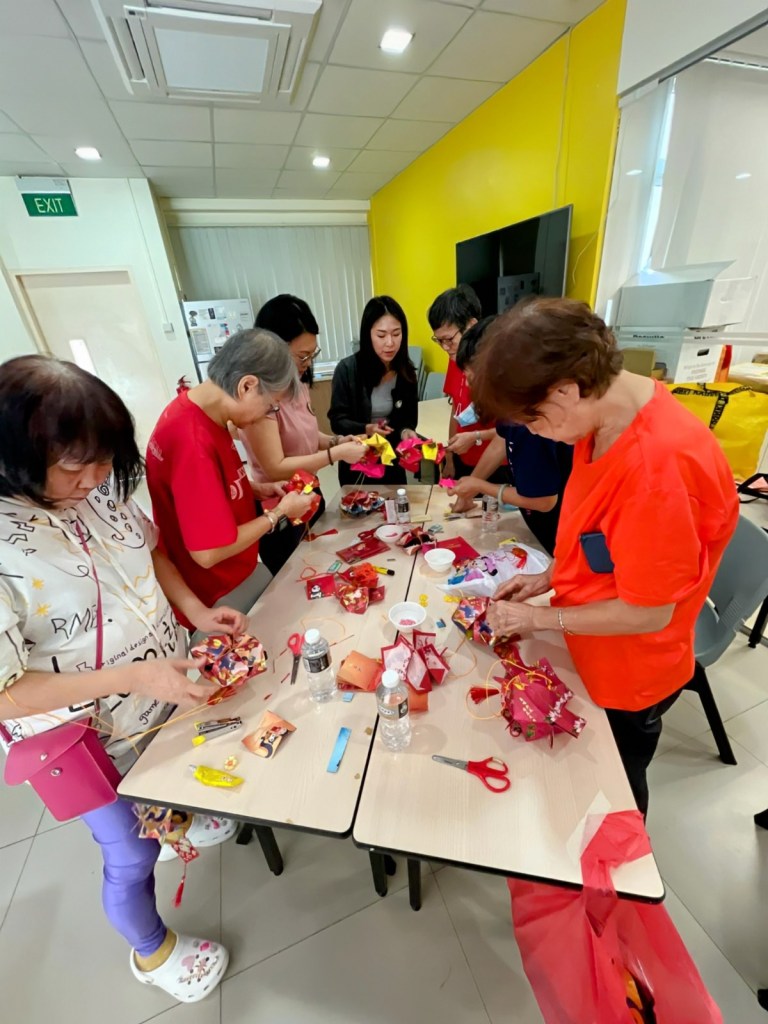 7th February 2024 – We went to Bukit Batok East RN to teach a group of active seniors how to make ang bao lanterns using ang bao (red packets)!