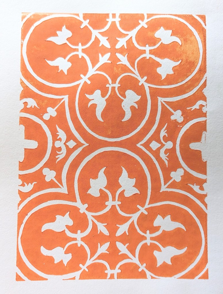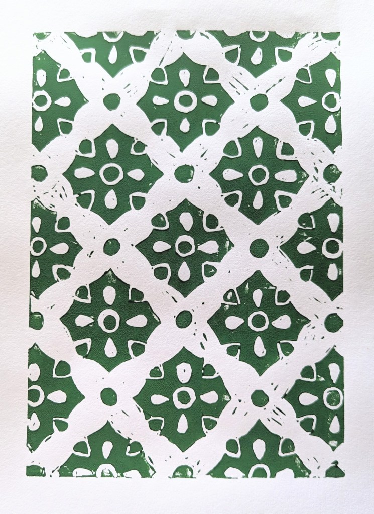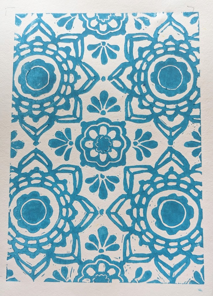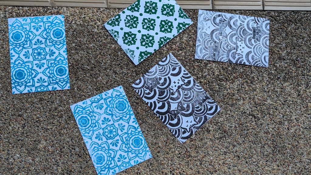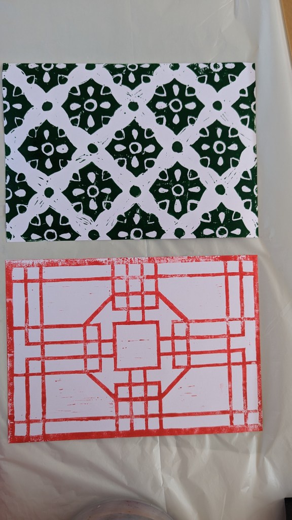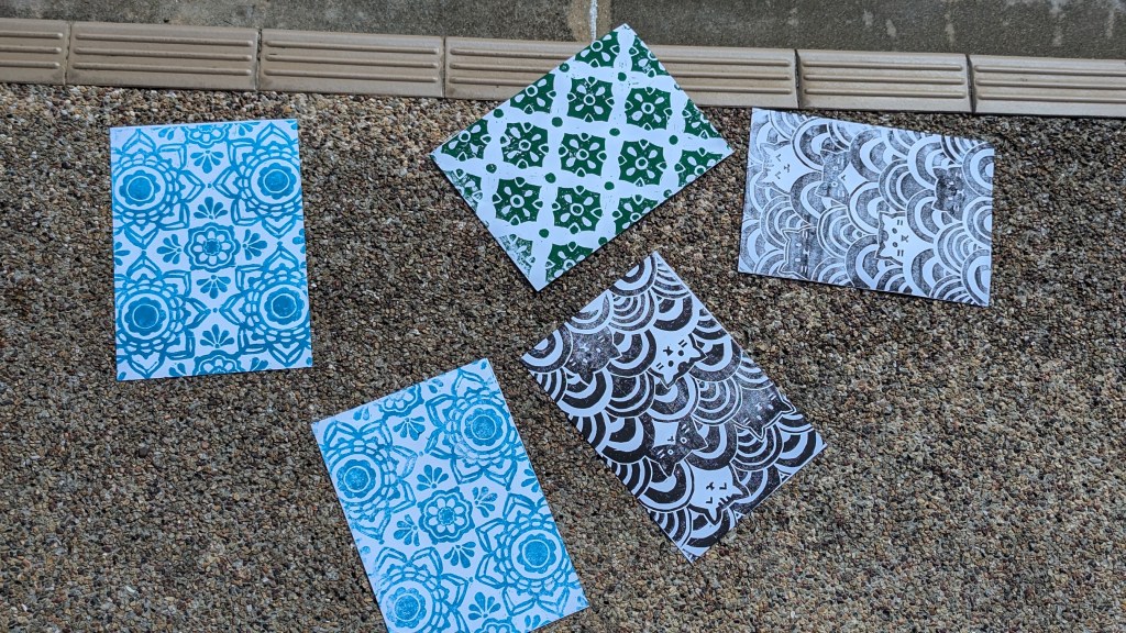 The template was pre-cut by Trainer Sharyl Lam, many thanks to her meticulous skill and patience. The students then inked and printed the design on postcard papers with description of the history and meaning of the design at the back of the card.