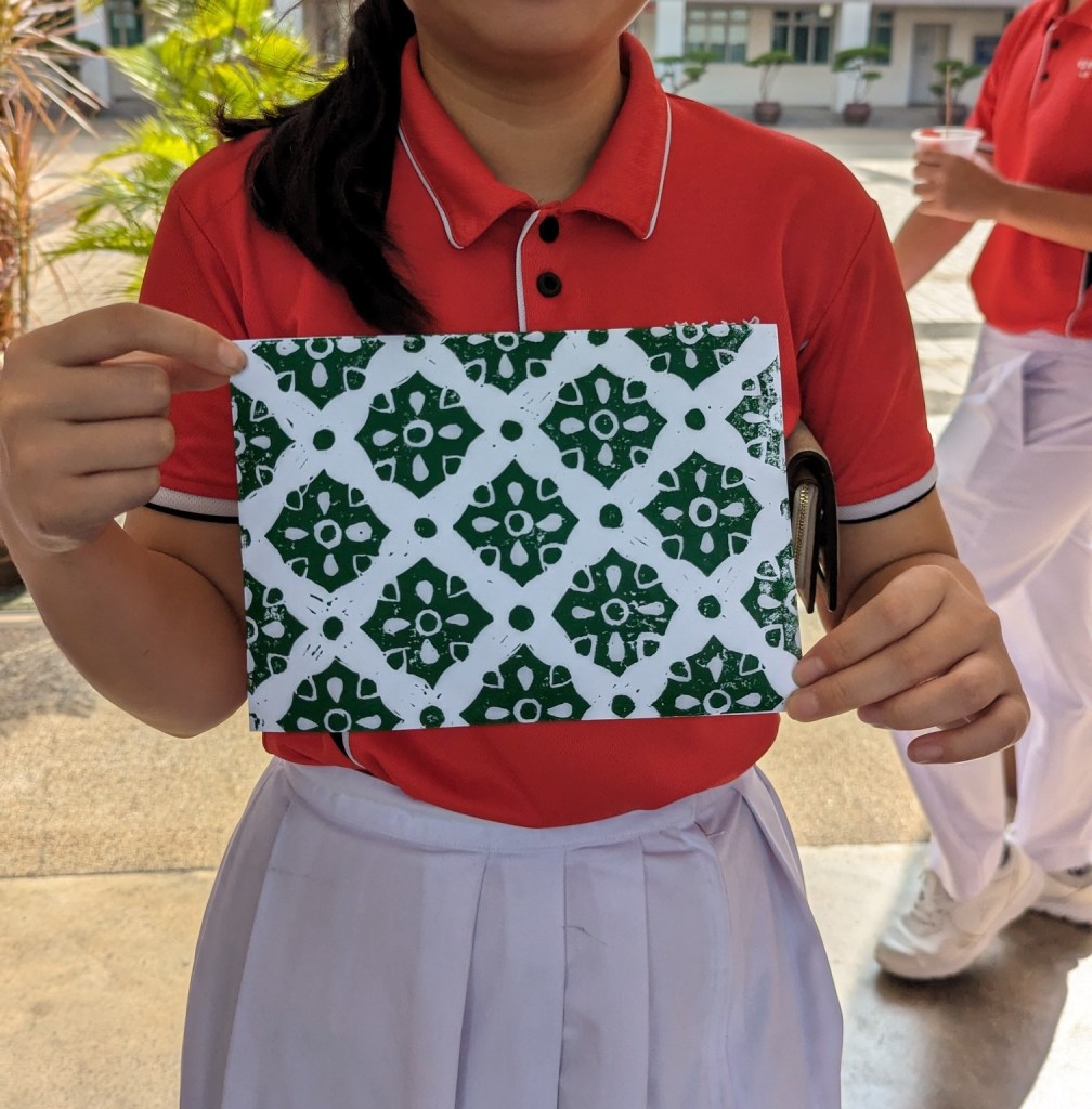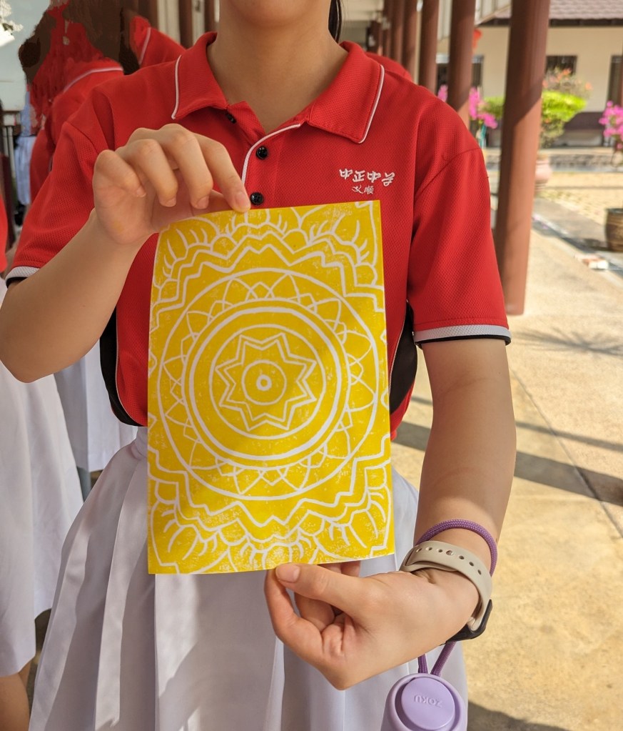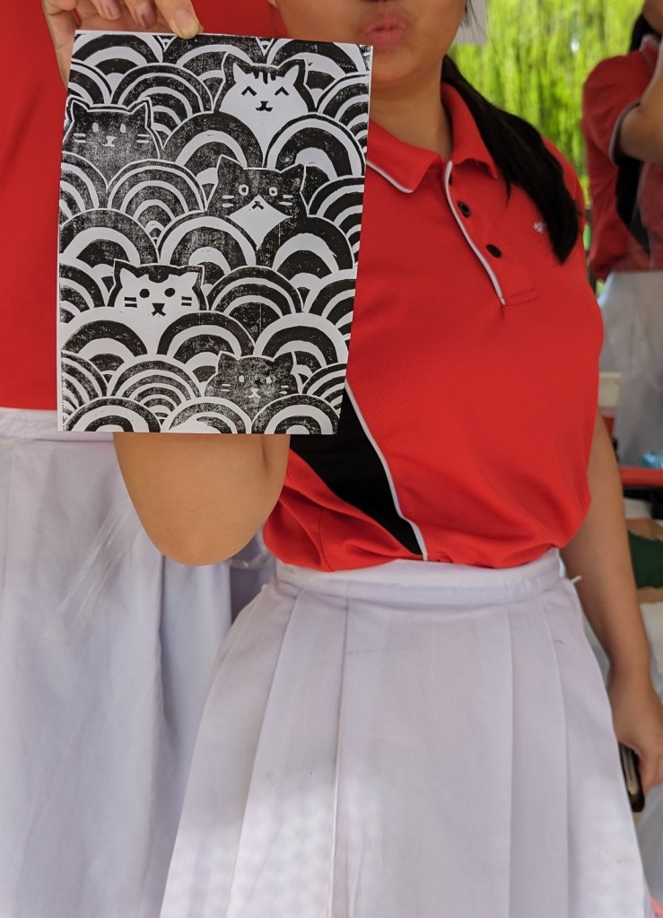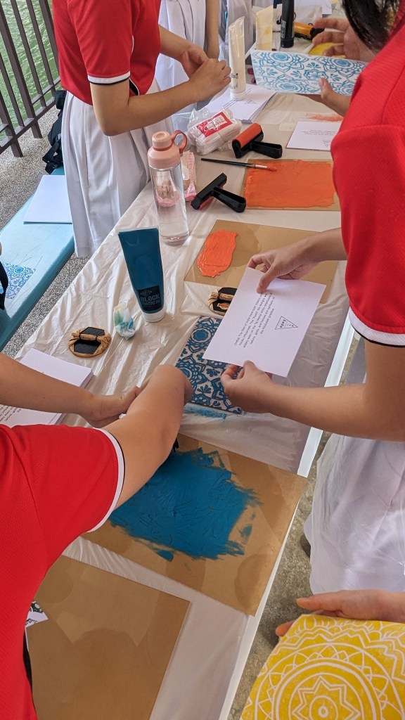 Here we are at Chung Cheng High School in a Printmaking Event! The school had invited ArtStories to conduct a printmaking booth style activity for their students to create prints inspired by the various patterns of Asia; Thailand, India, China, Japan, Korea and Singapore (Peranakan).