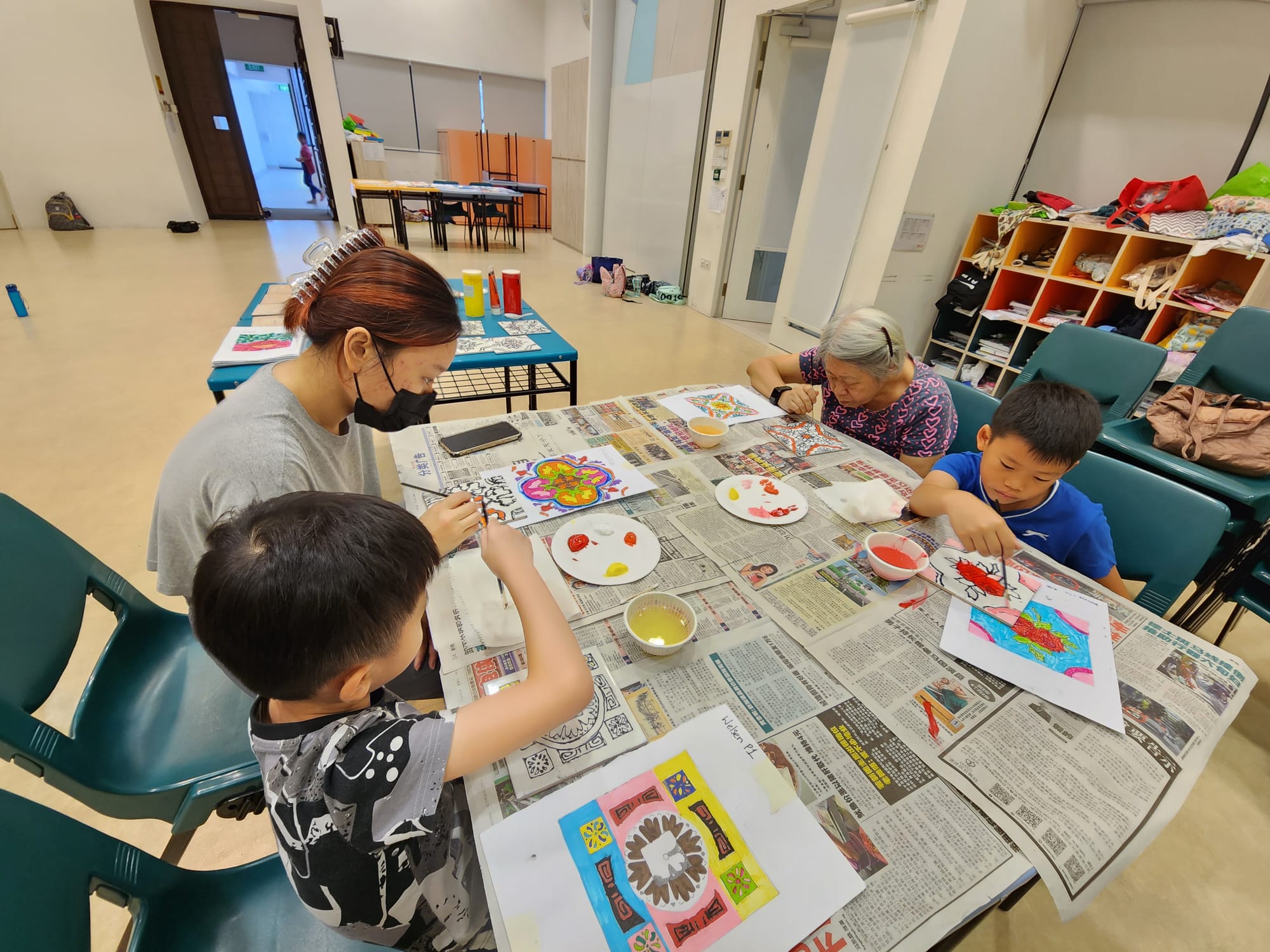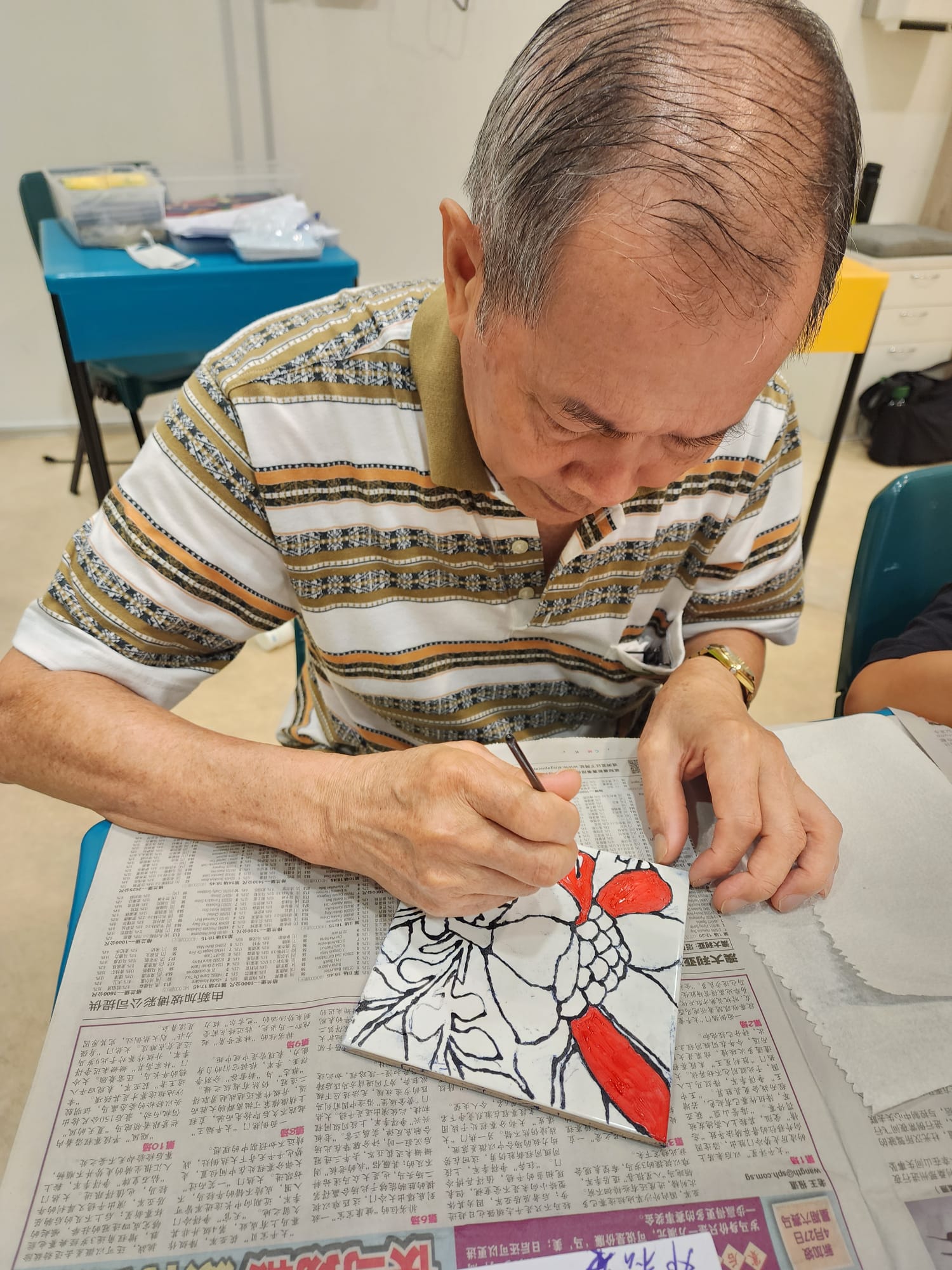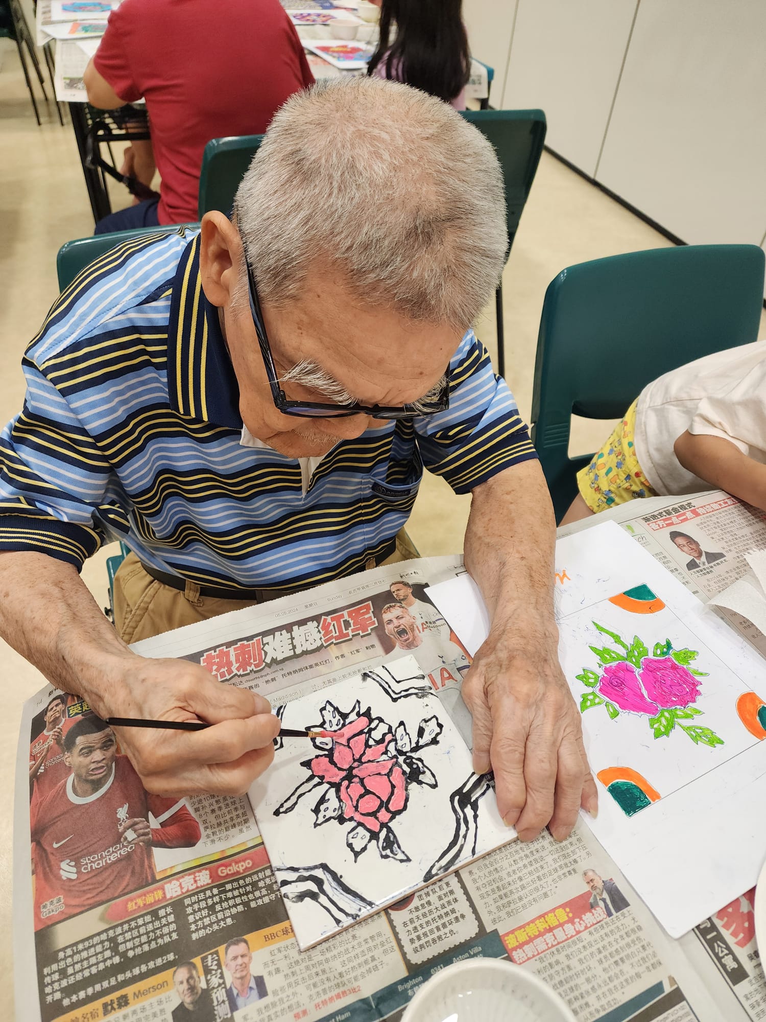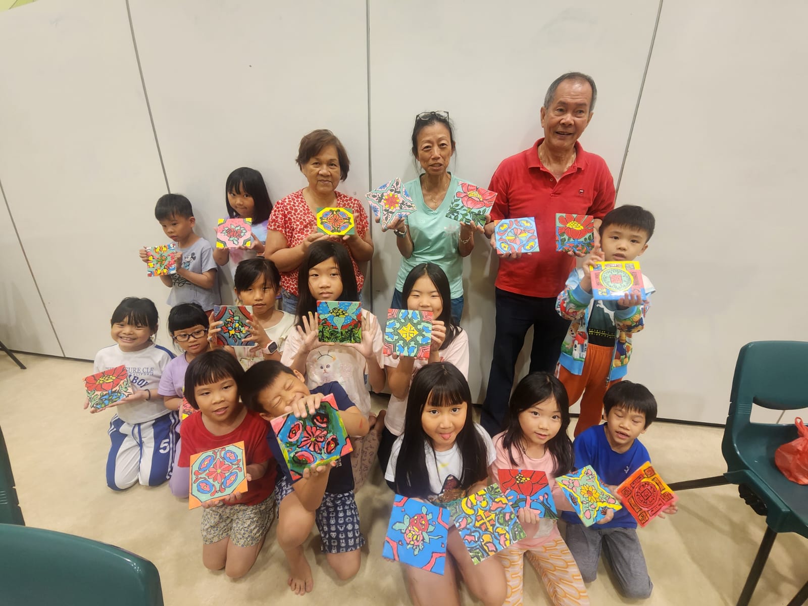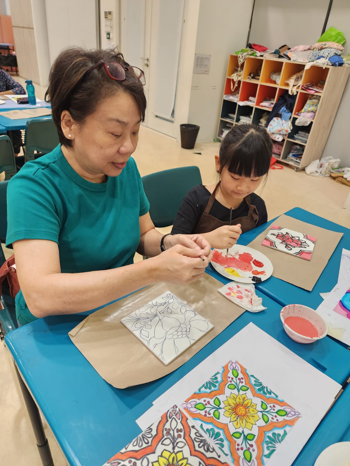 The seniors, guided by the children, embraced this new creative experience with enthusiasm, learning about the intricate motifs and vibrant colors that characterize Peranakan art. This unique opportunity allowed both generations to bond, with the children teaching the seniors the techniques, while the seniors shared stories of their own cultural experiences.