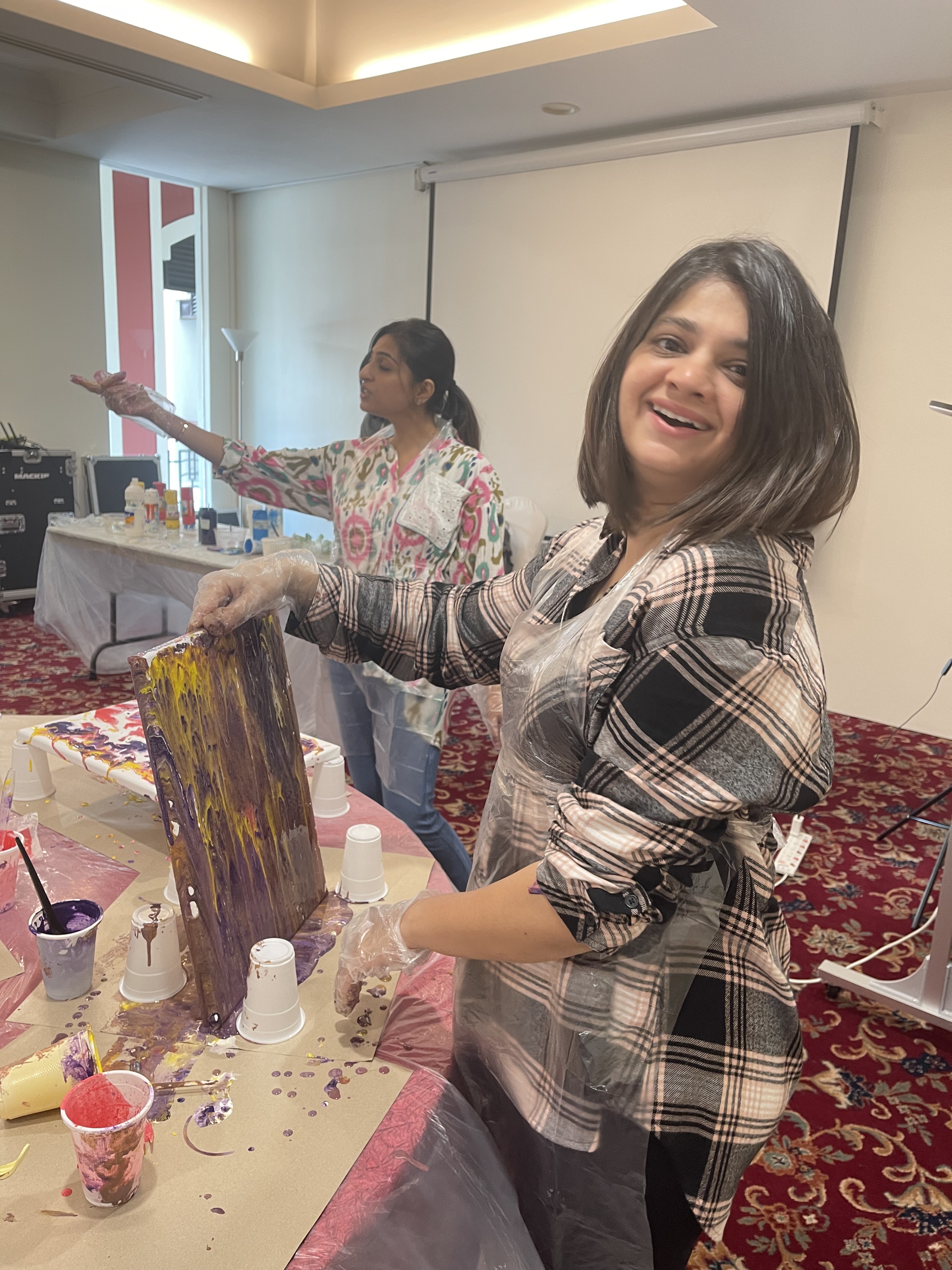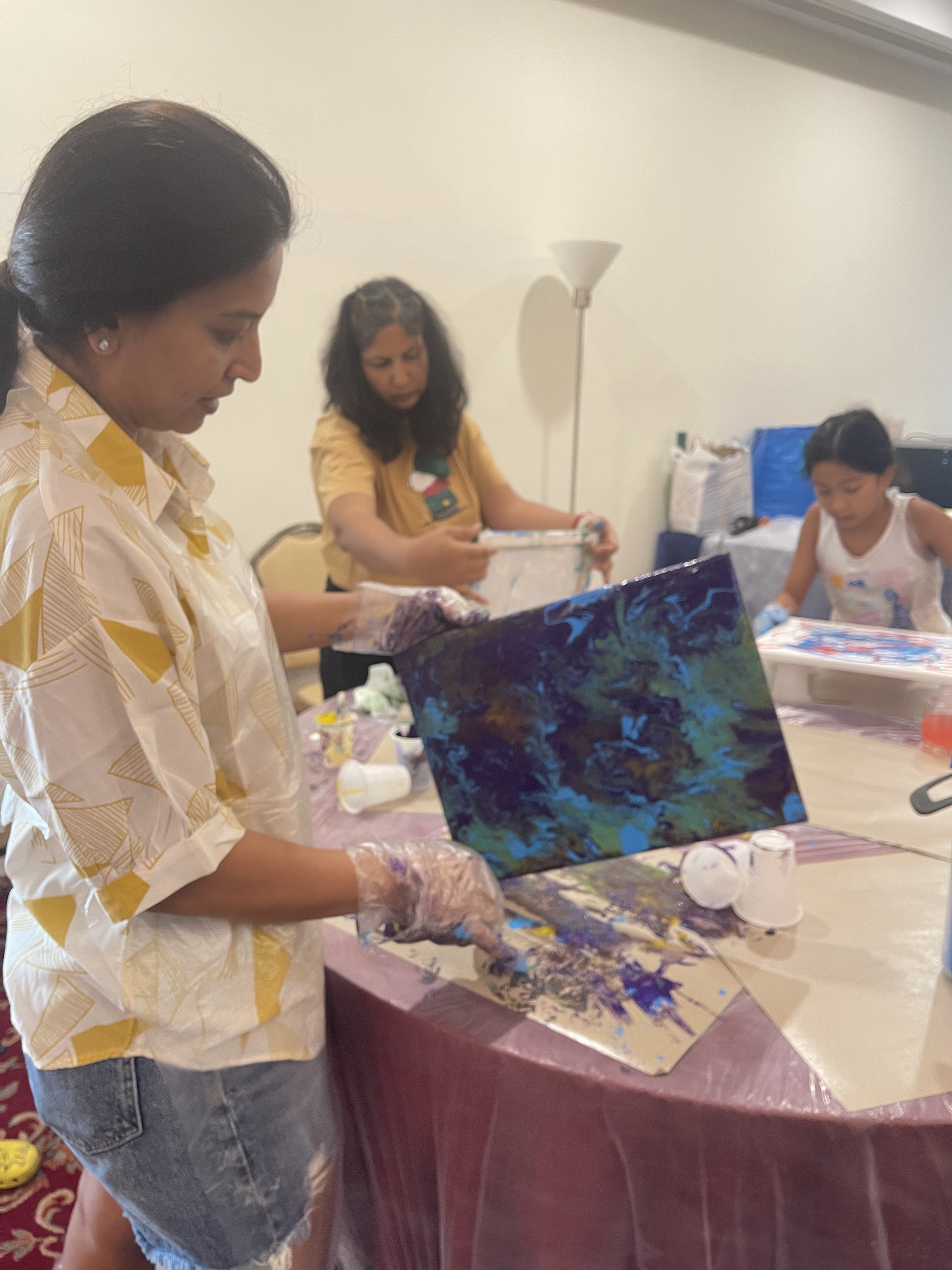 This engaging workshop allowed participants to unleash their inner artists, experimenting with swirling colors and unique pouring techniques to create stunning, one-of-a-kind artworks.