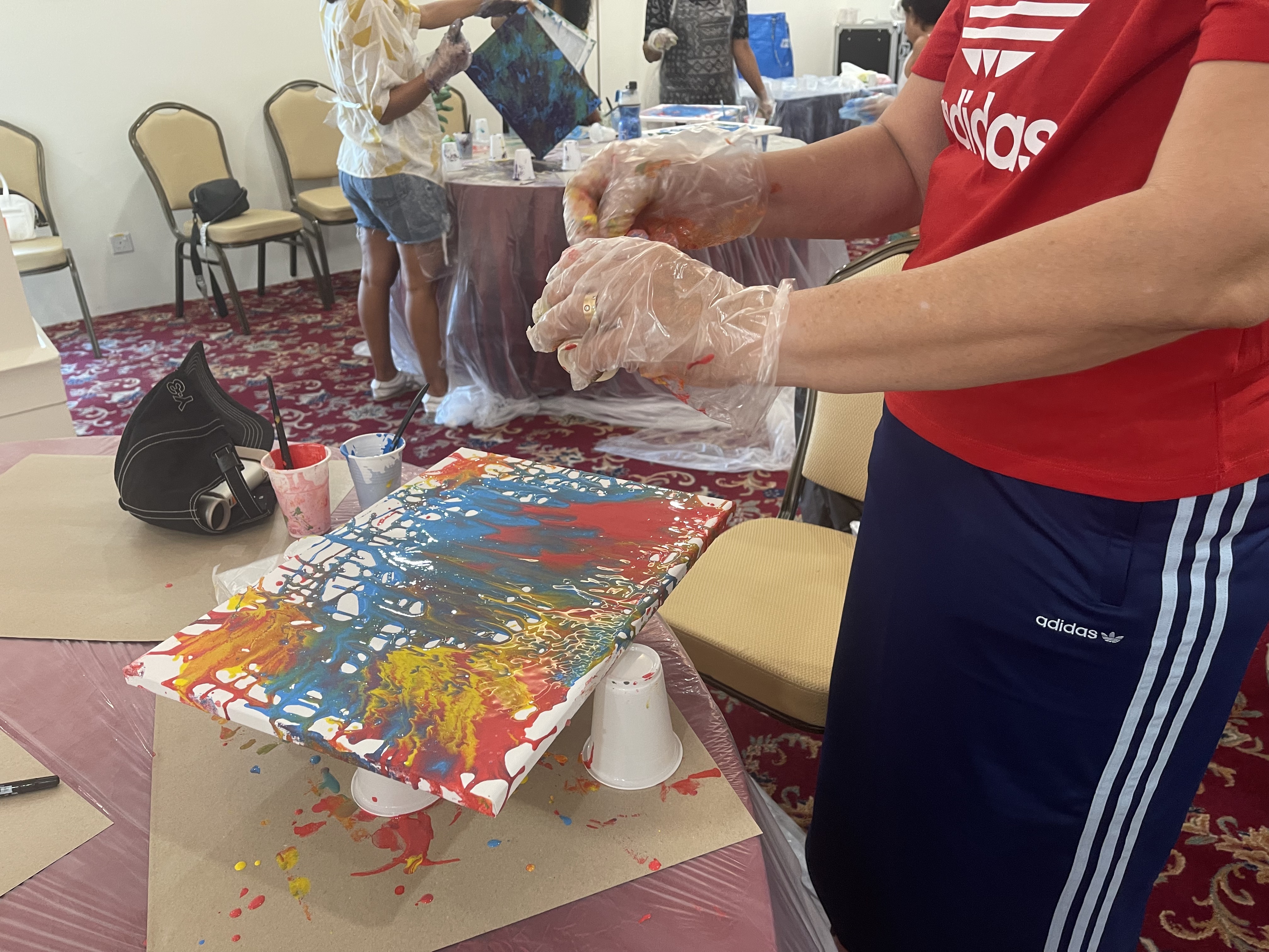 Members of the Singapore Swimming Club recently had a delightful and creative experience at an Acrylic Pour Painting class, where they explored the vibrant world of fluid art.