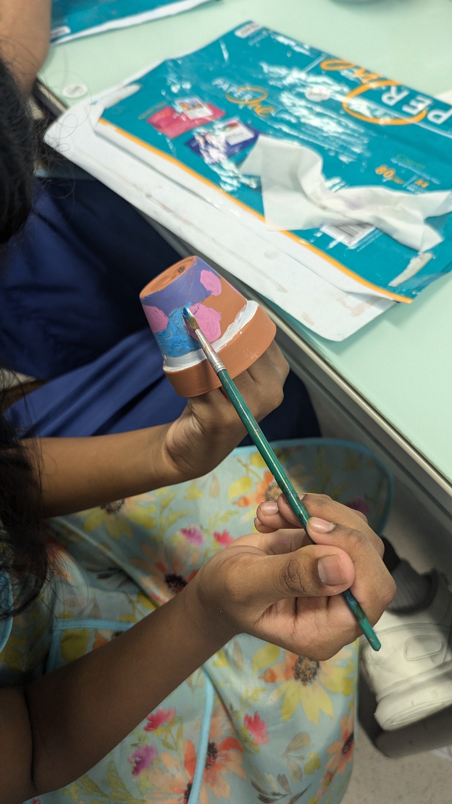 Meanwhile, in the Pot Painting session, participants decorated small plant pots with bright, bold colors and intricate designs, adding a personal touch to each pot that would later house their favorite plants. The room was filled with laughter and excitement as everyone shared their designs, exchanging ideas and techniques for creating the most stunning patterns.