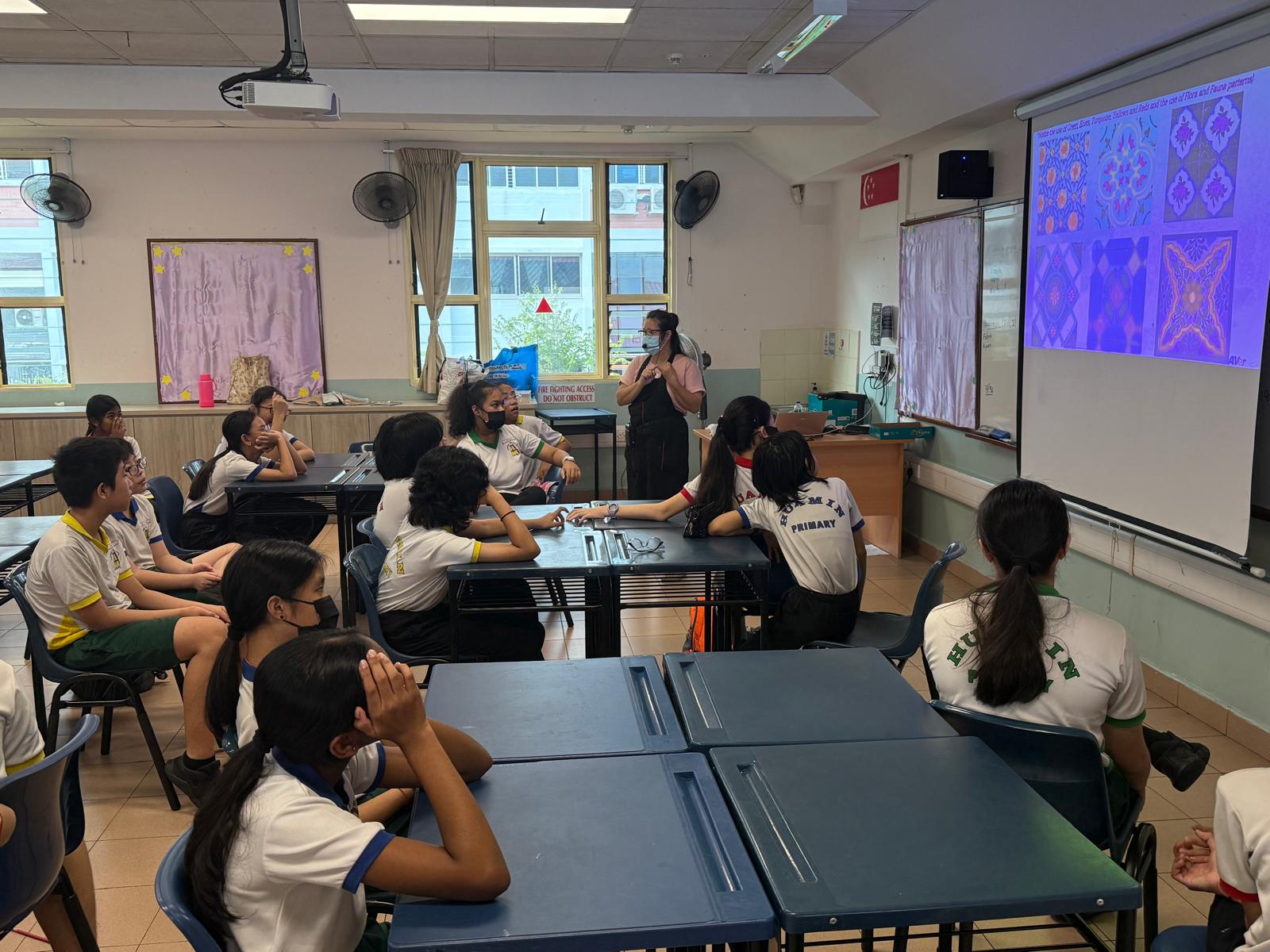 At Huamin Primary School, students had the exciting opportunity to learn about Peranakan culture through a hands-on art project. They studied the distinctive and colorful patterns that define Peranakan art, which blends Chinese and Malay elements into beautiful, intricate designs.