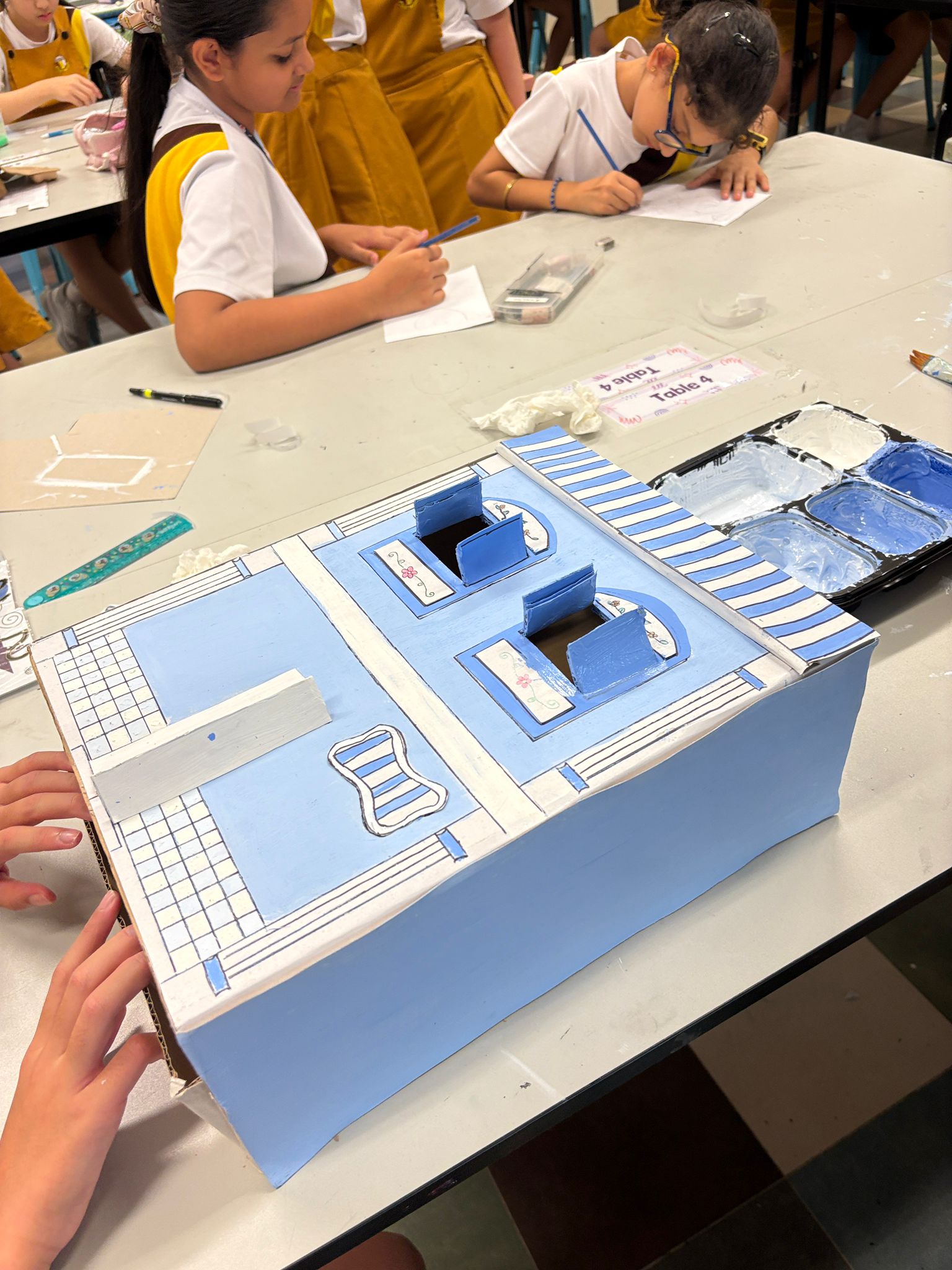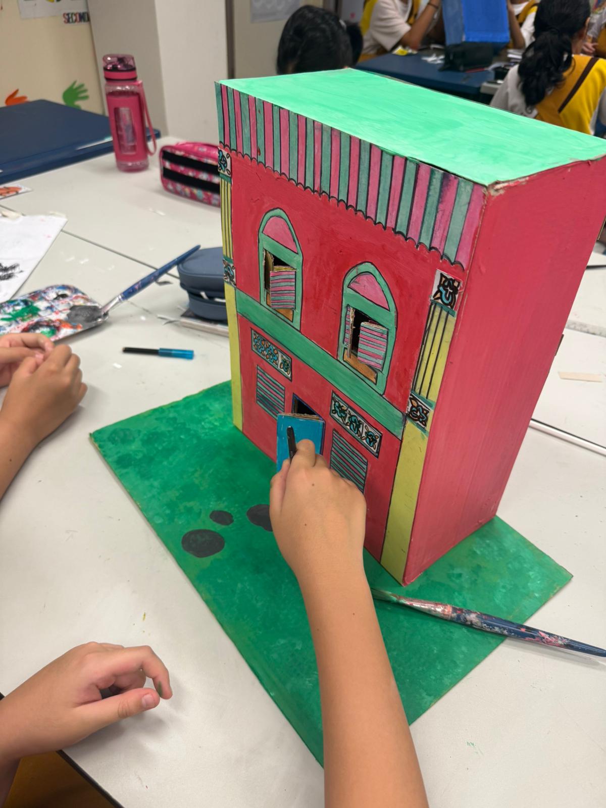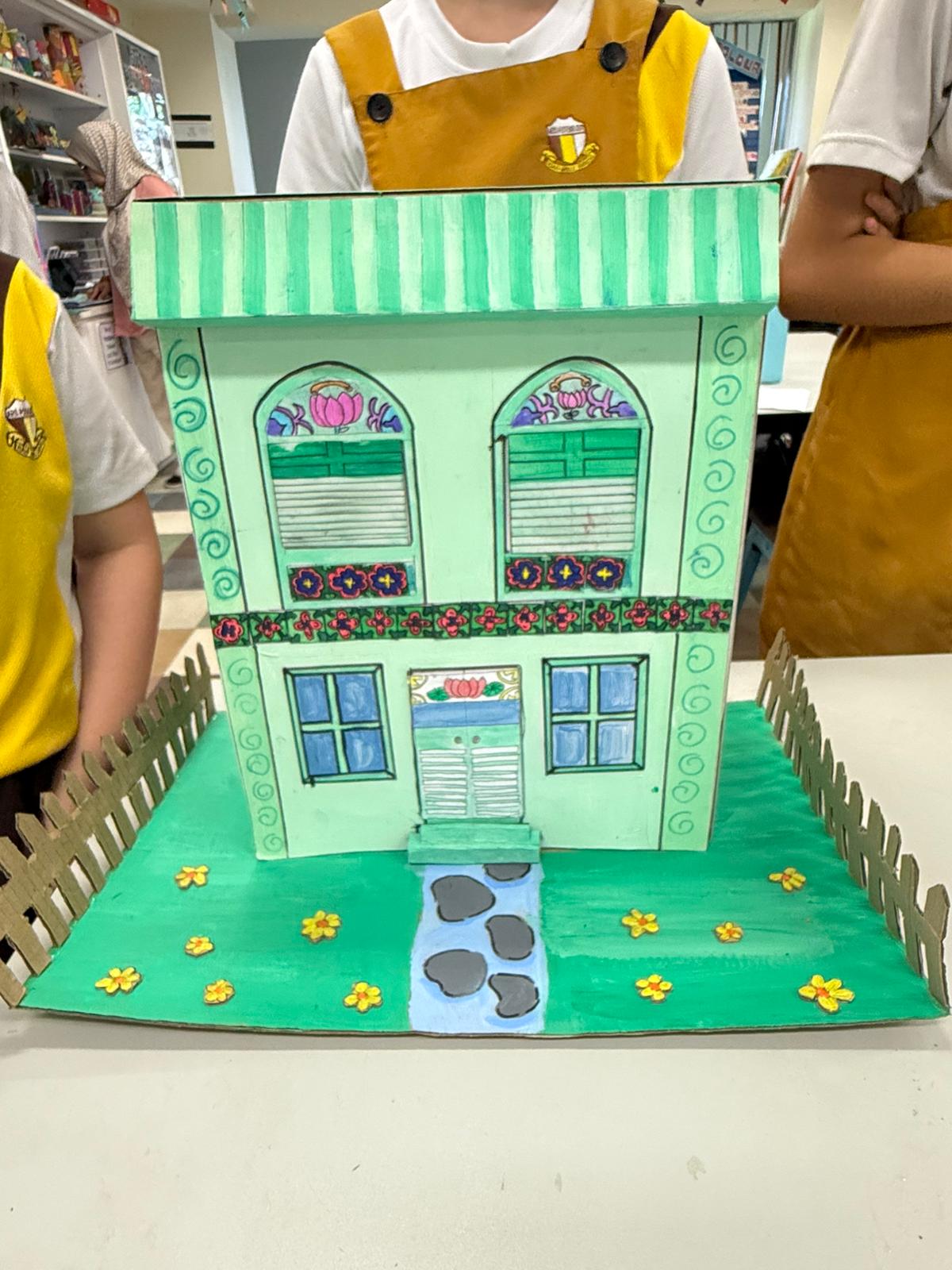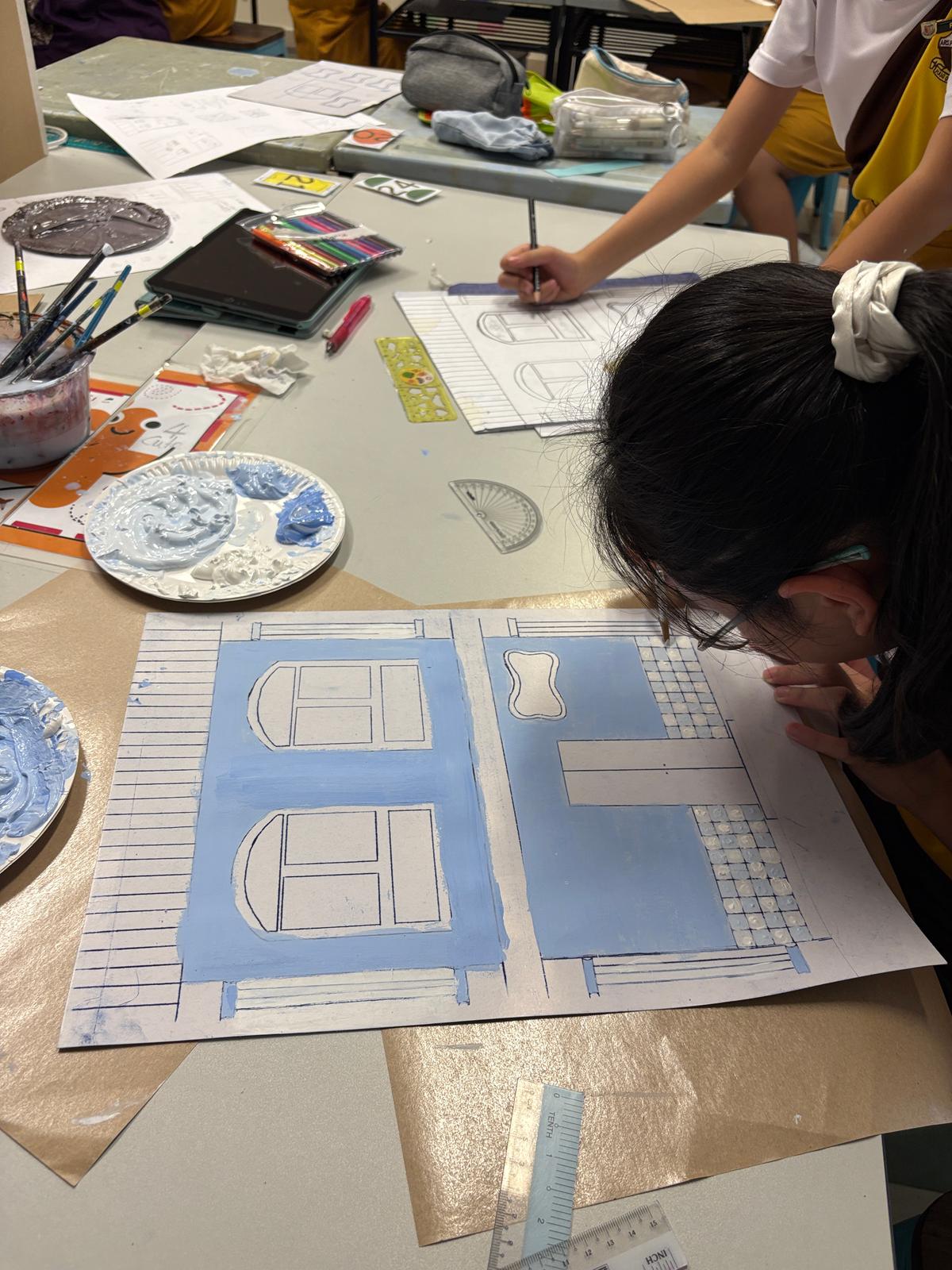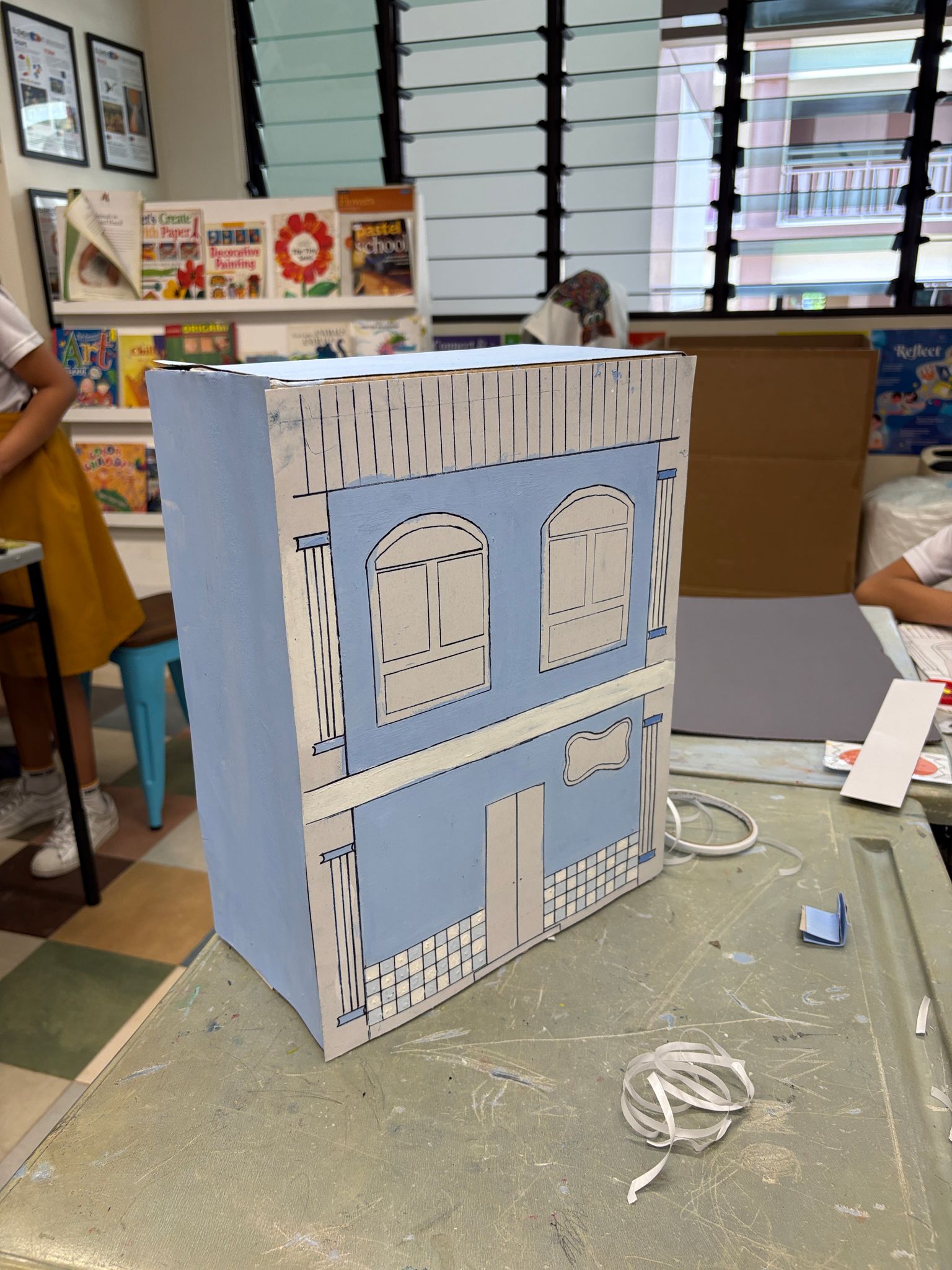 We did a collage-making project with Haig Girls, honoring the Peranakan Houses in Singapore! Through this hands-on activity, the students explored the unique architectural features and cultural significance of these iconic shophouses. Using only cardboard pieces, glue, tape, styrofoam, paints, and papers, the students created their version and understanding of Peranakan Houses.