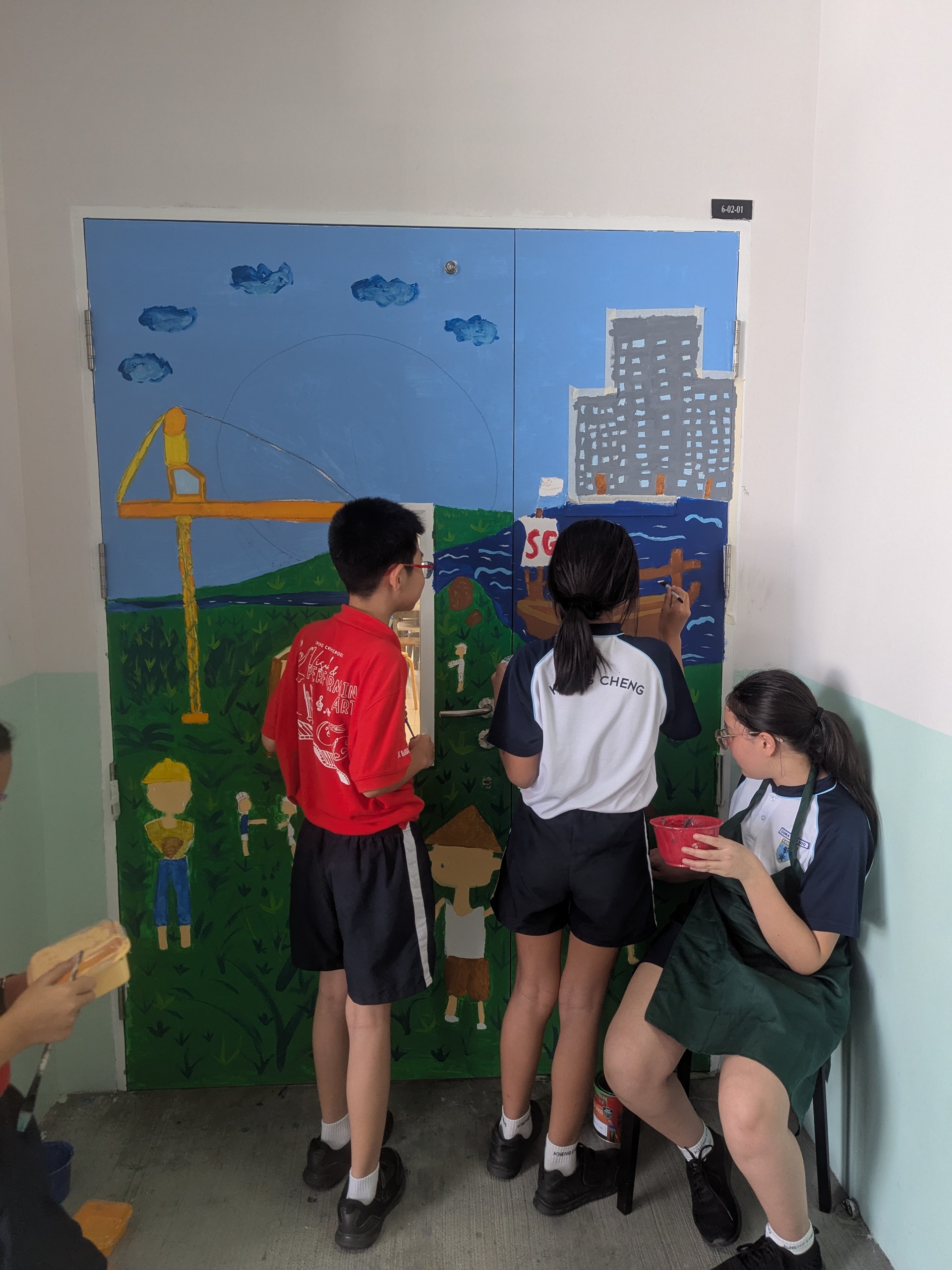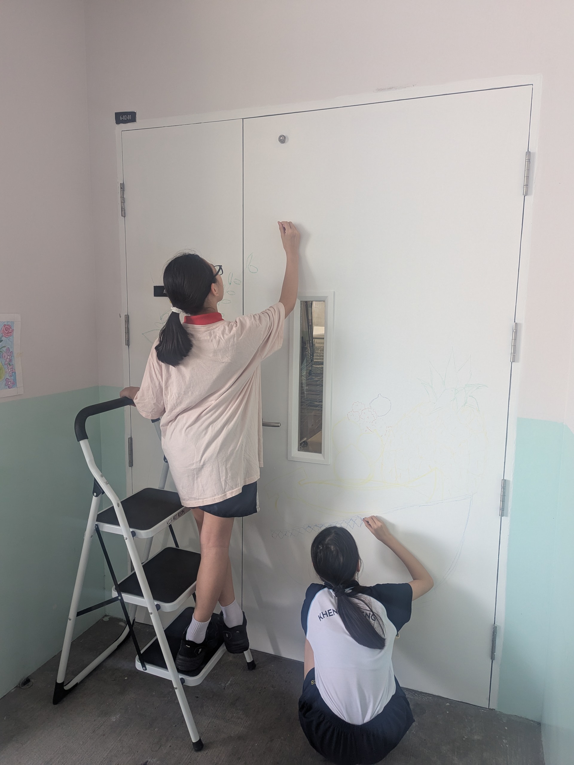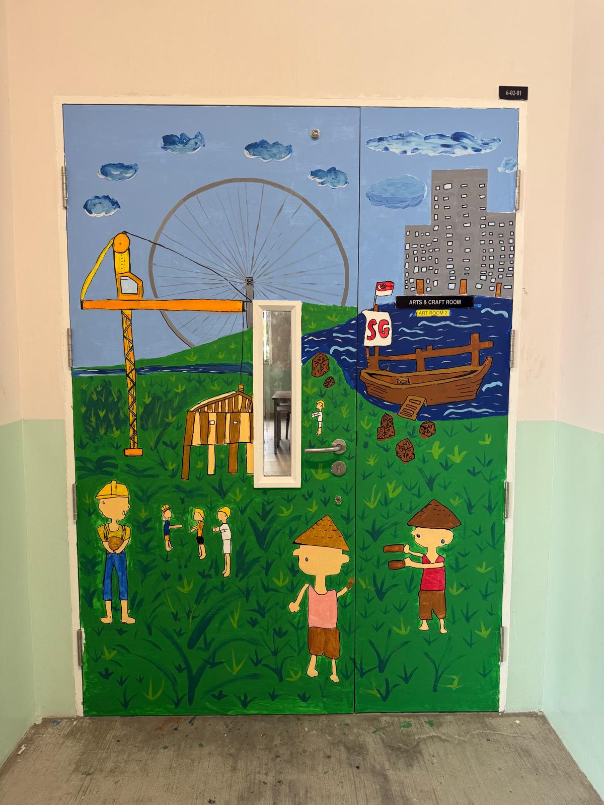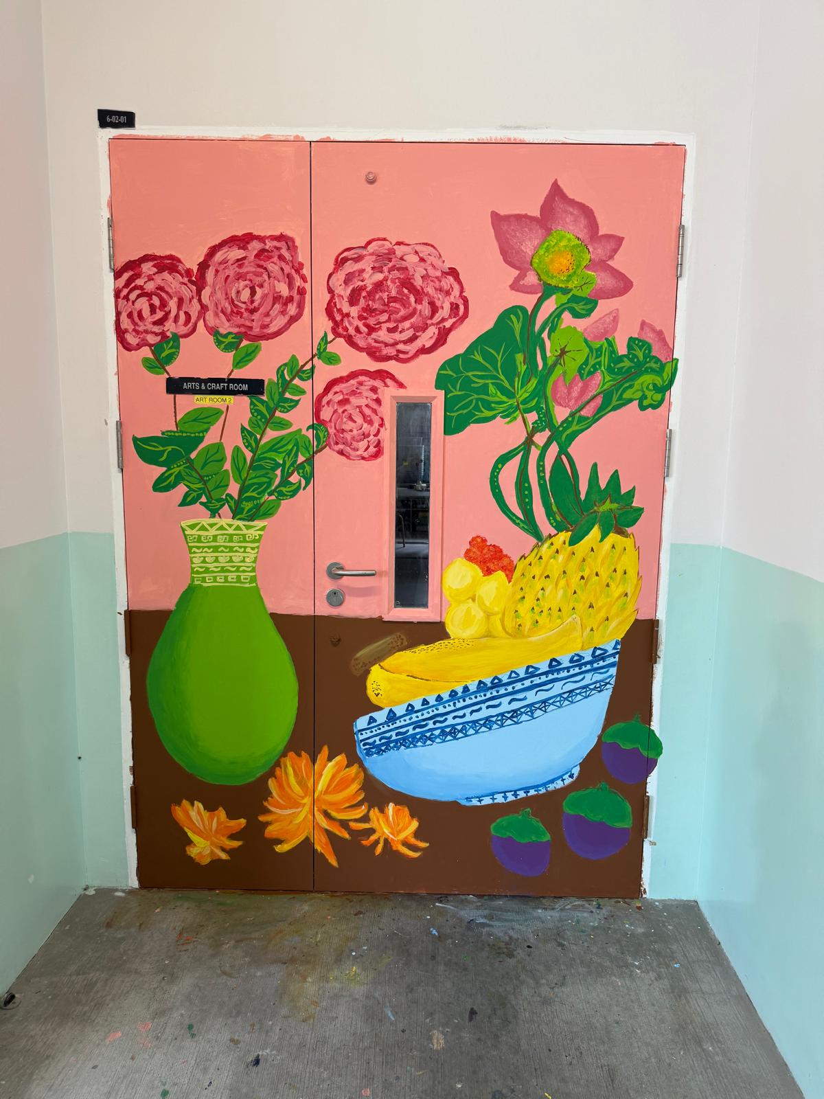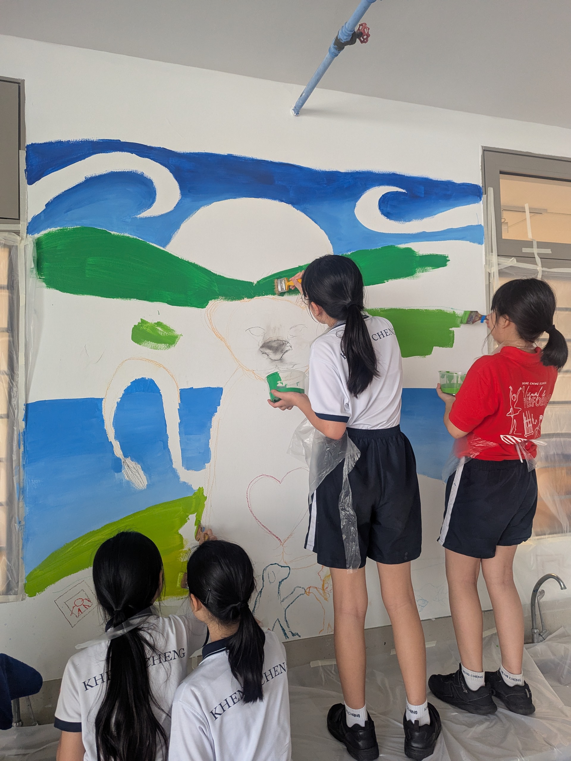 Jacquelyn was invited as an Artist in School Scheme to help support the art club students in Kheng Cheng Primary to paint four murals outside their Art room. We went with the theme of two international artists, Keith Harring & Vincent Van Gogh, with two Singaporean Artists, Liu Kang & Georgette Chen.