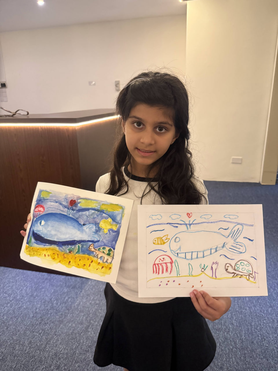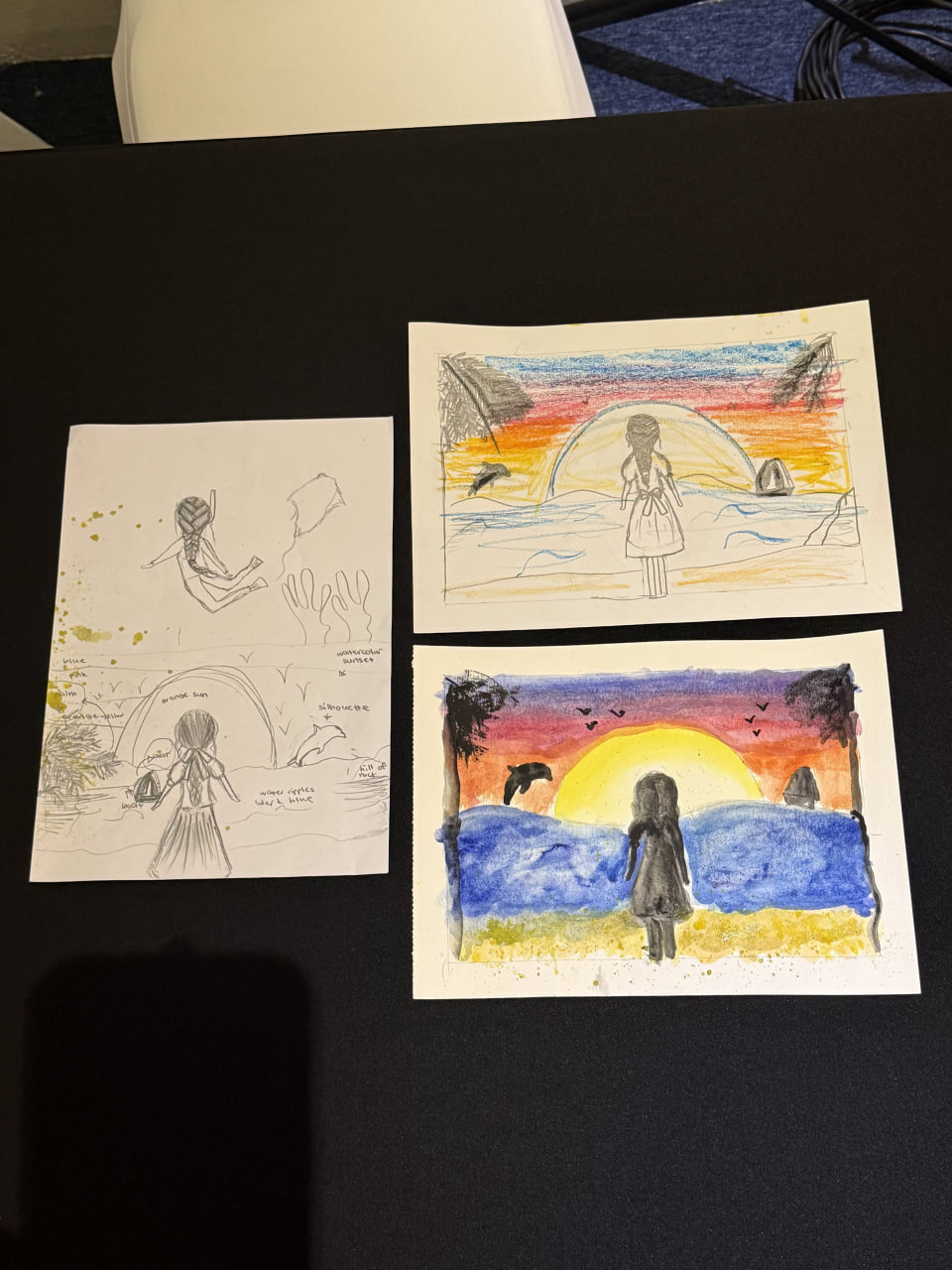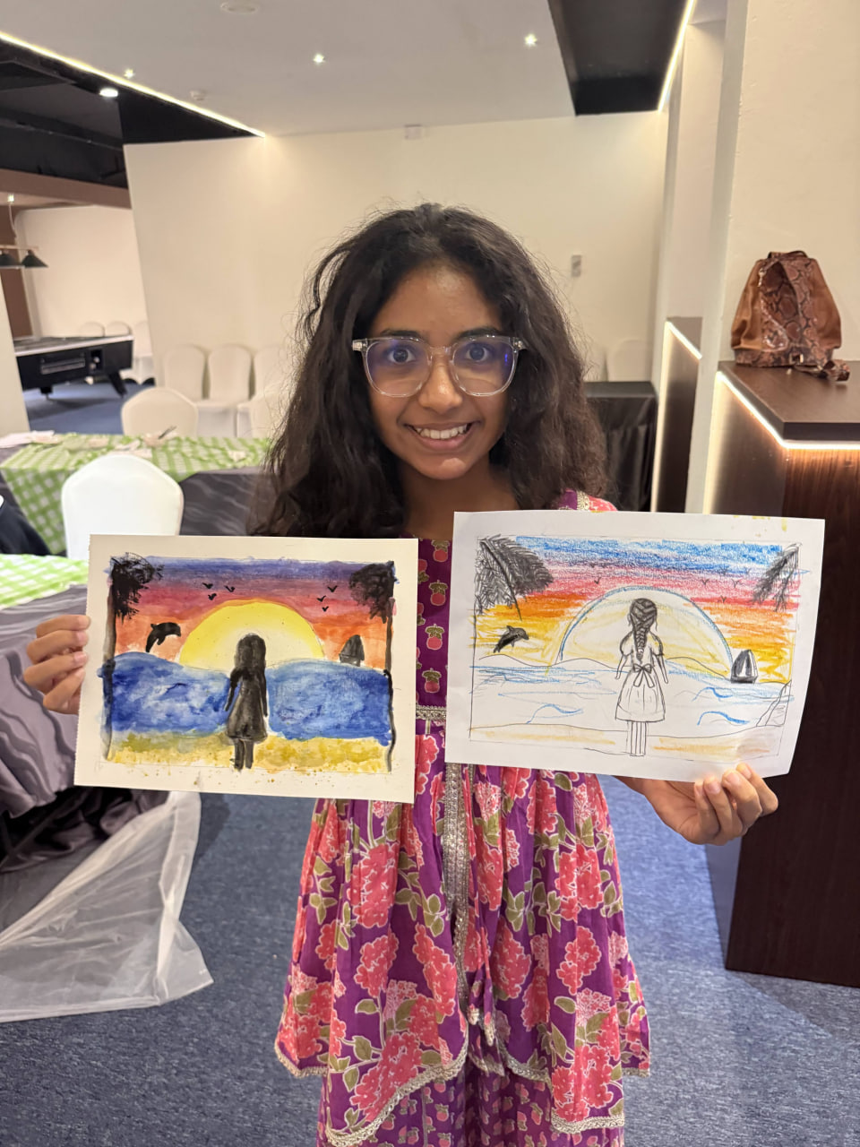 Everyone proudly displayed their colorful watercolor works toward the end of the session, each one showcasing their own creativity and newly acquired talent. It was a delightful and unforgettable experience that colorfully combined education, art, and community spirit.