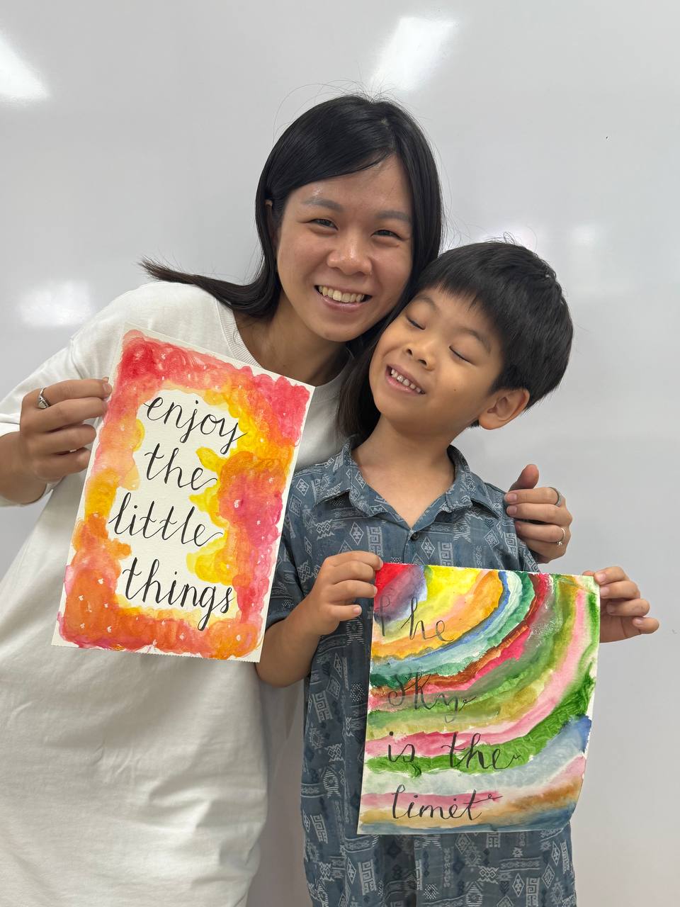 The Acrylic Pour Painting workshop was a big hit, as participants watched in awe while vibrant paints swirled and mixed into mesmerizing patterns on their canvases. In the Brush Lettering sessions, families discovered the art of crafting beautiful, flowing words, with each stroke bringing smiles and a sense of accomplishment. The DIY Plushie Making workshop was pure delight for the little ones, who eagerly stitched, stuffed, and decorated their very own cuddly creations to take home.
