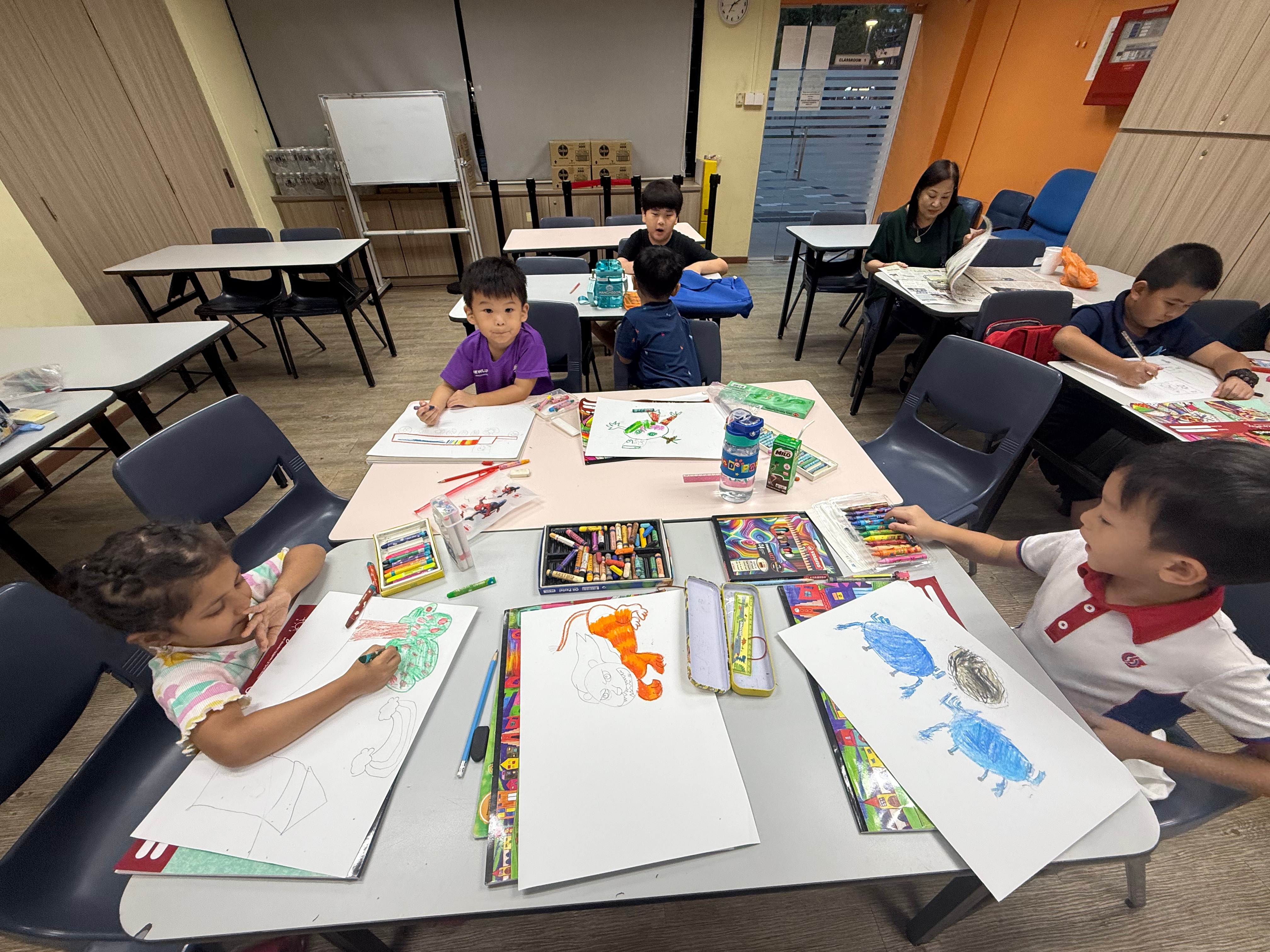 Jacquelyn was selected by Bedok Bougainvillea Residents’ Committee RC to conduct a series of term classes as part of a special Mixed Media Art Programme for children aged 4 to 12 years old. Designed to spark imagination and creativity, Jacquelyn integrated storytelling elements into the curriculum, encouraging each child to create their very own unique story through art.