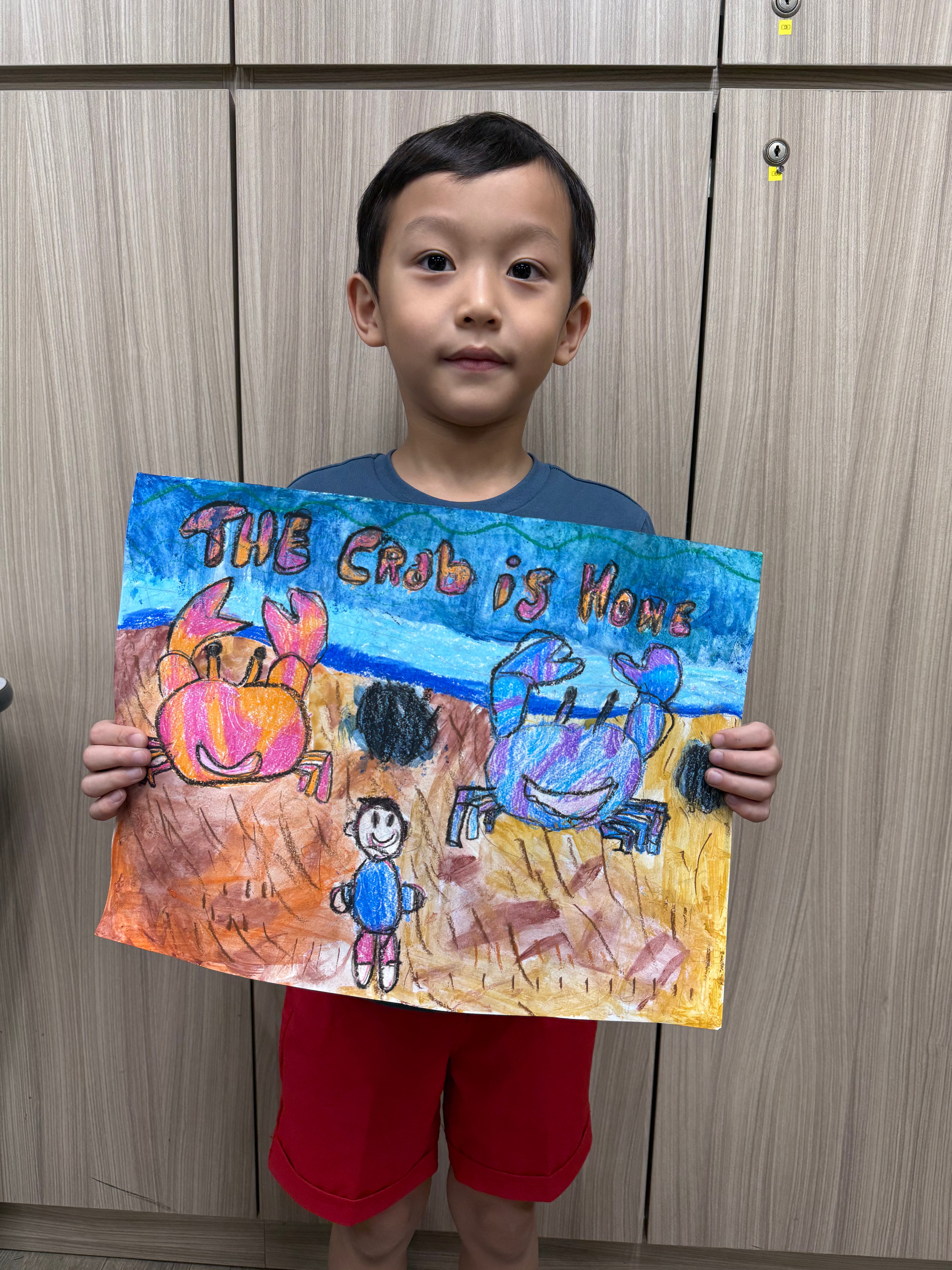 The programme guided students to think about important storytelling components such as characters, plot, setting, and scenes, and then bring these ideas to life using a variety of art materials and techniques. One memorable highlight was a student who created a heartwarming story about a crab on a journey to find its way back home, showing both creativity and emotional depth.