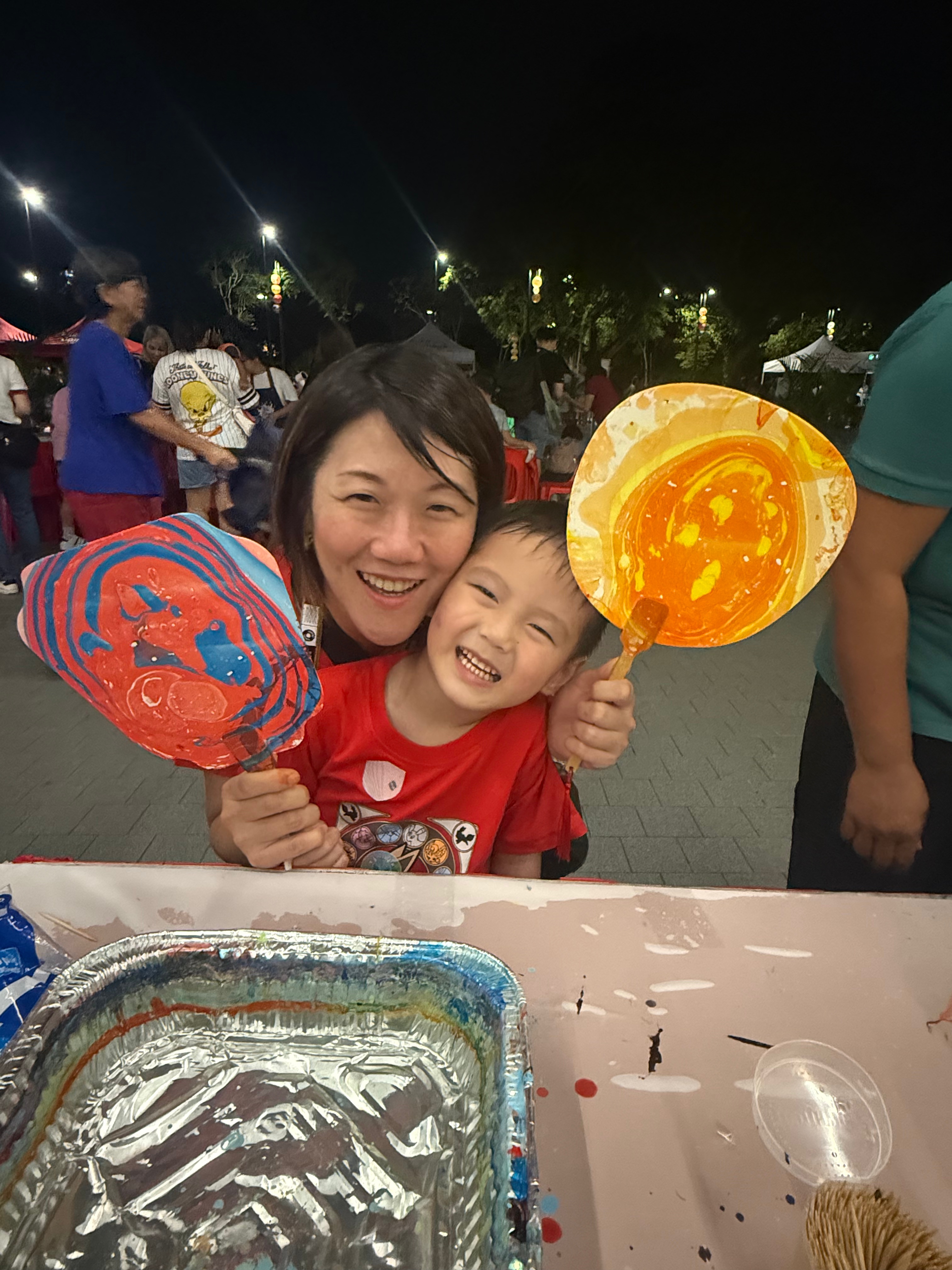 As part of its Mid-Autumn Festival celebration, the Bukit Gombak Community Club was thrilled to have artist Jacquelyn and her trainees lead a unique workshop on fan marbling and dried flower bookmark making. Residents of all ages came together for a colorful, creative, and joyous evening at the workshop.