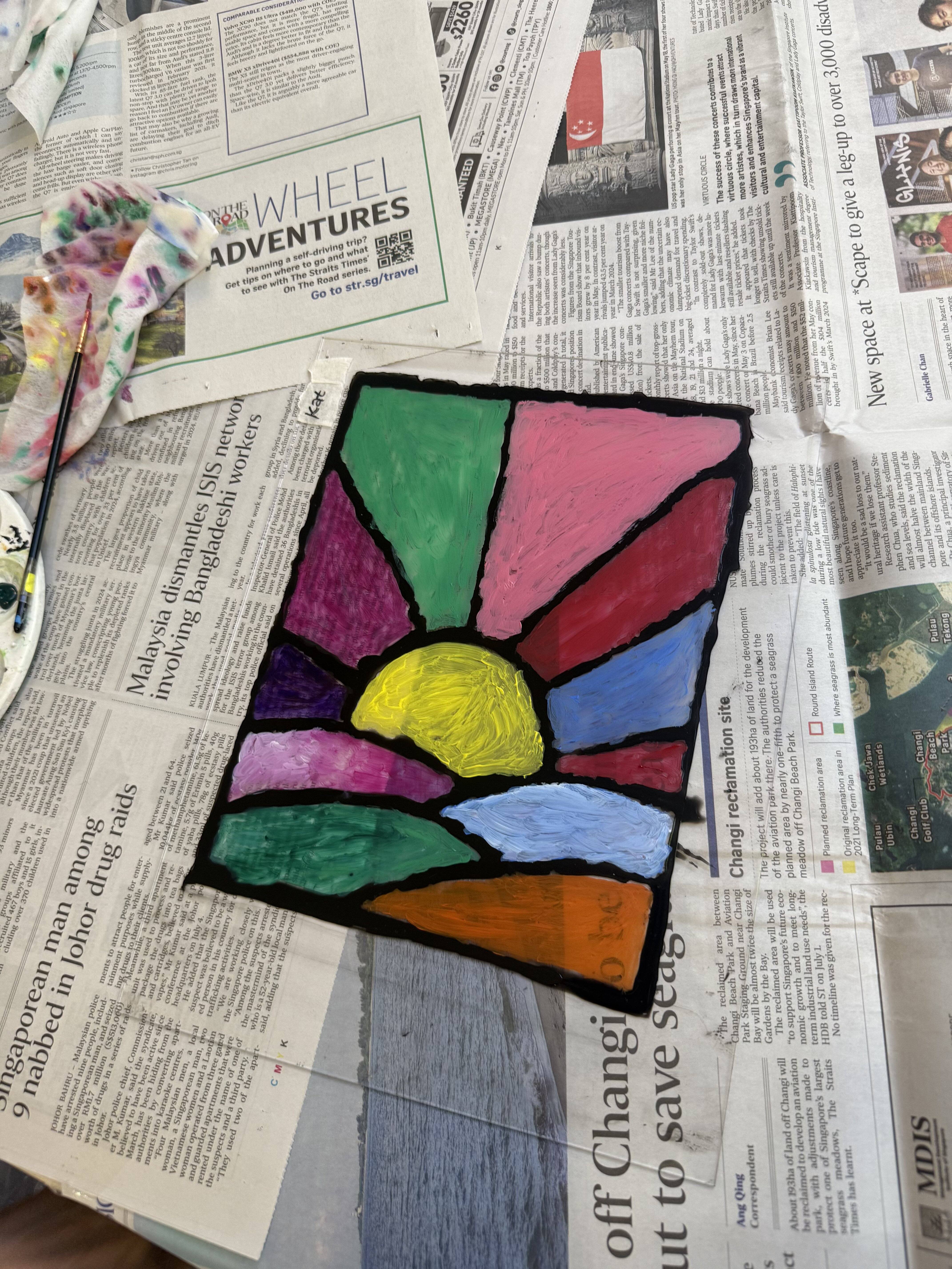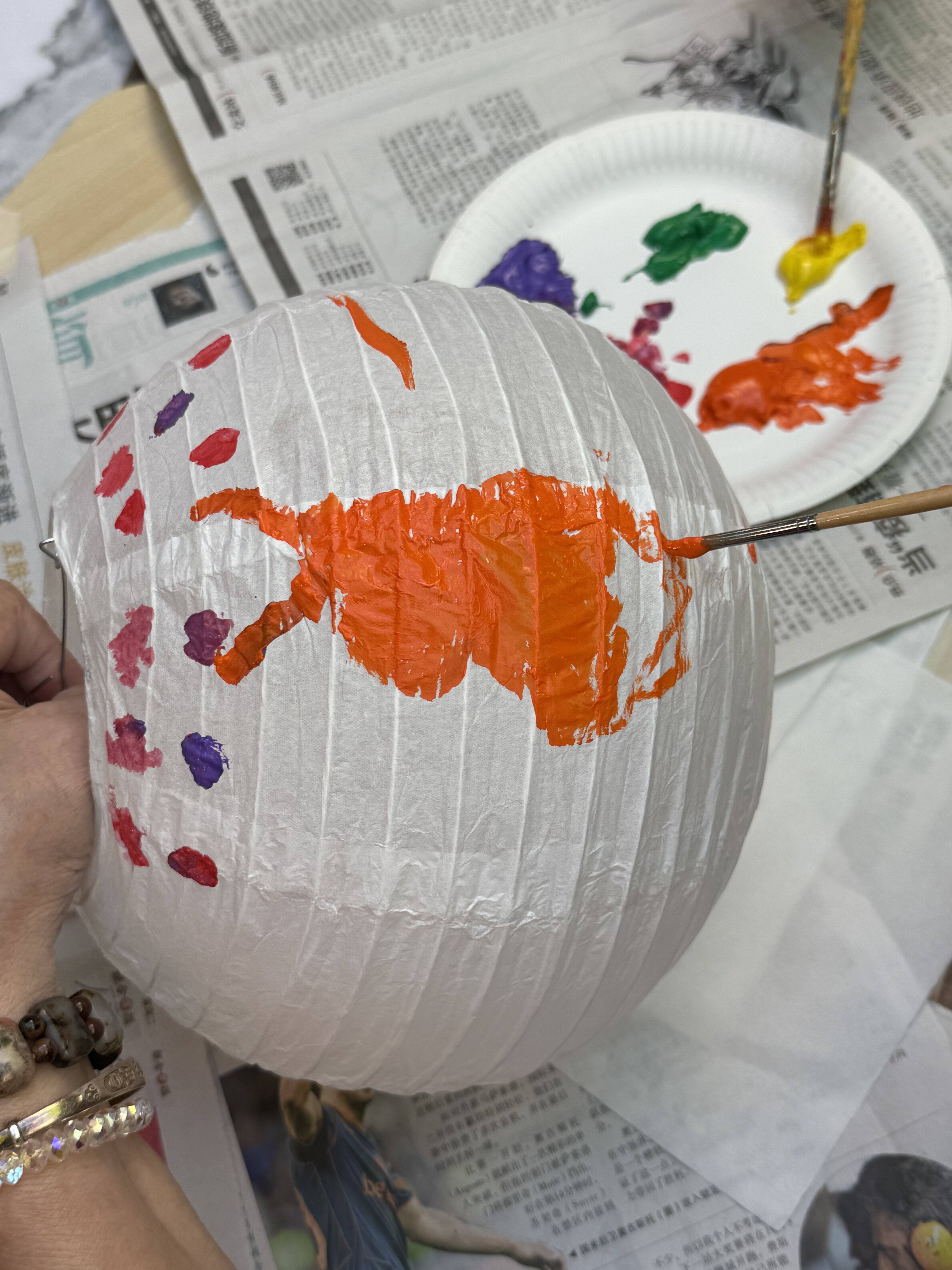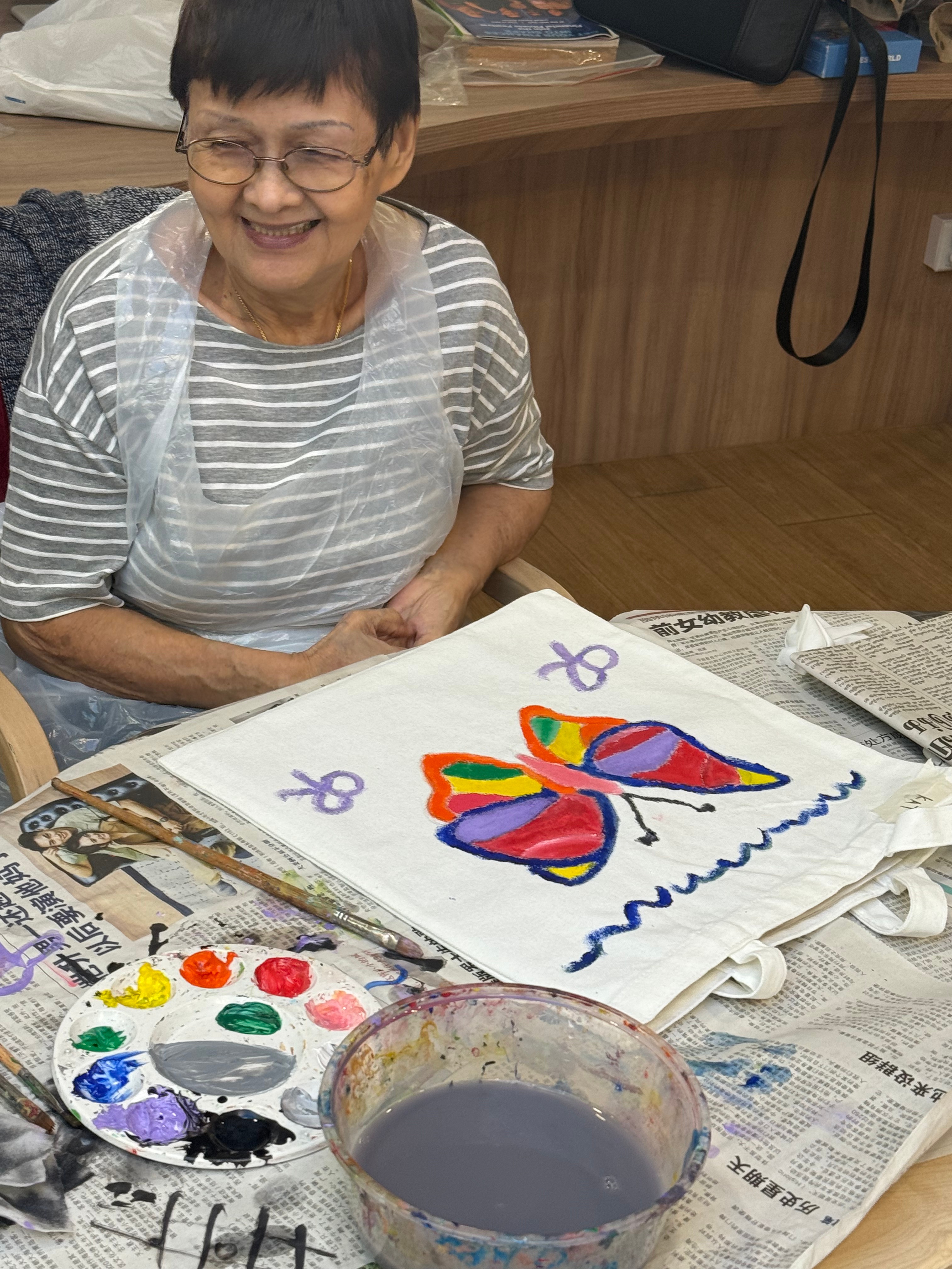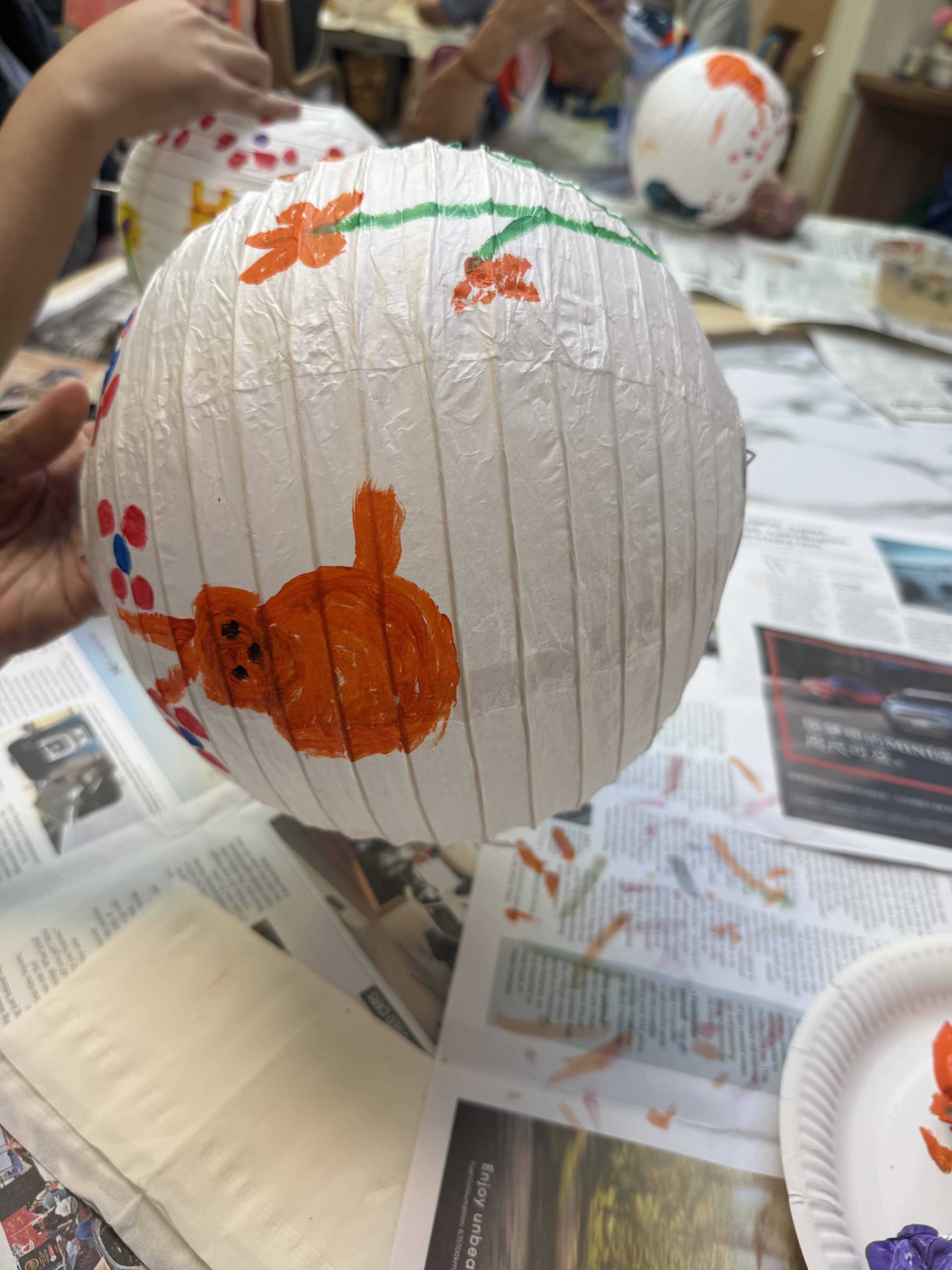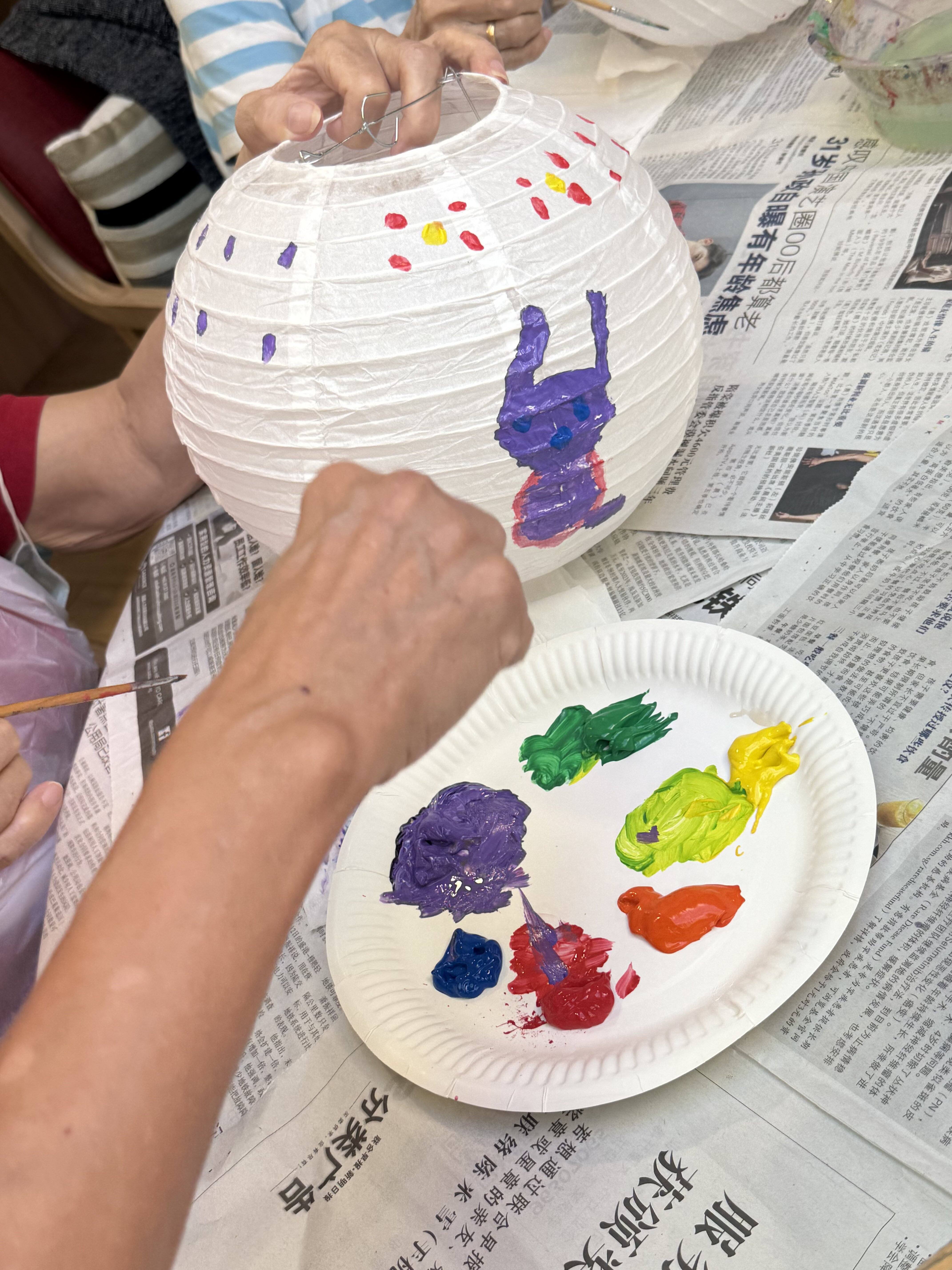 The residents experimented with a range of painting techniques and mediums over the course of eight weeks, including lantern painting for the Mid-Autumn Festival, acrylic pour painting, stained glass art, and even Chinese ink paintings with elegant bamboos and cute pandas.